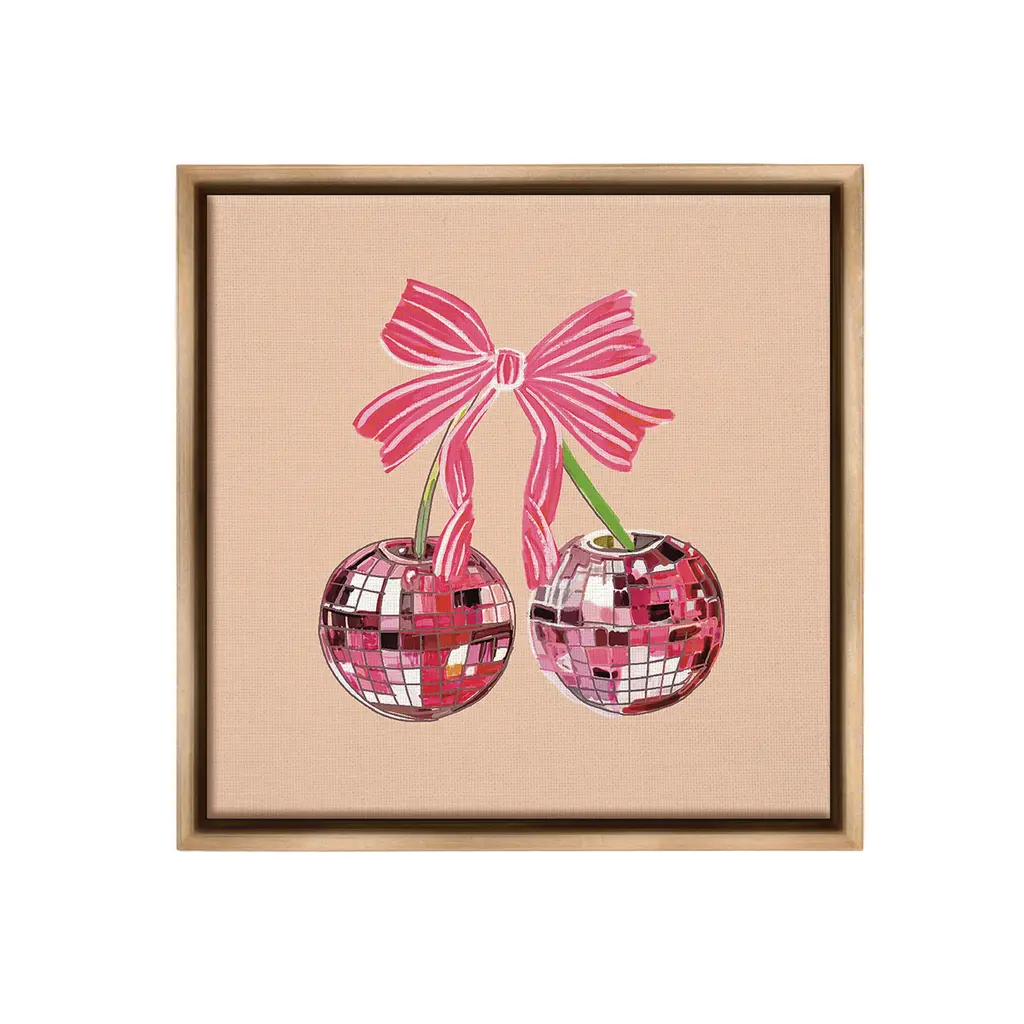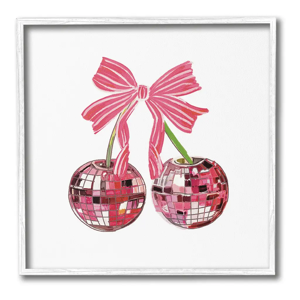 Elevate your home or office to the next level with Stupell Framed Floating Canvas Wall Art. Our premium hand-stretched canvas is mounted securely into a sturdy lightweight frame. The museum-style gap between the wrapped canvas and the box frame gives the illusion of floating artwork. Stupell Wall Art is made in the USA.Features: Dimensions: 18 x 1.7 x 18 Frame, 17 x 1.5 x 17 Canvas ArtFloating Frame Canvas Products are available in sizes 18"x18" and 25"x25". All Floating Frame Canvas Products have a 1.7" Depth.Wall Art is Ready to Hang with Hardware Free Hanging. No Installation required. For Easy Set Up Lean or Layer Artwork on Shelf or Against Wall. Artwork is Permently Fixed into the Frame.Our elevated 1.7" Thick Floating Frame is the perfect complement to our canvas style Wall Art. We use only the highest quality inks in house with industry leading printing solutions. Canvas is hand stretched over a durable wood foundation and then mounted securly into a Modern Box Frame. Made in the USA.Artwork Relates To: Dance, Music, Disco, Pattern, Fruit, Cherry, Geometric, GlamDesign by Amelia Noyes