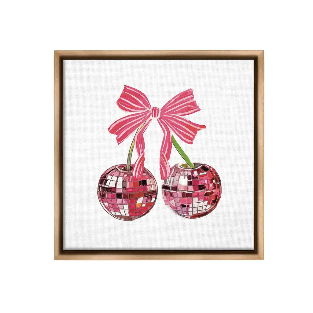 Elevate your home or office to the next level with Stupell Framed Floating Canvas Wall Art. Our premium hand-stretched canvas is mounted securely into a sturdy lightweight frame. The museum-style gap between the wrapped canvas and the box frame gives the illusion of floating artwork. Stupell Wall Art is made in the USA.Features: Dimensions: 18 x 1.7 x 18 Frame, 17 x 1.5 x 17 Canvas ArtFloating Frame Canvas Products are available in sizes 18"x18" and 25"x25". All Floating Frame Canvas Products have a 1.7" Depth.Wall Art is Ready to Hang with Hardware Free Hanging. No Installation required. For Easy Set Up Lean or Layer Artwork on Shelf or Against Wall. Artwork is Permently Fixed into the Frame.Our elevated 1.7" Thick Floating Frame is the perfect complement to our canvas style Wall Art. We use only the highest quality inks in house with industry leading printing solutions. Canvas is hand stretched over a durable wood foundation and then mounted securly into a Modern Box Frame. Made in the USA.Artwork Relates To: Dance, Music, Disco, Pattern, Fruit, Cherry, Geometric, GlamDesign by Amelia Noyes