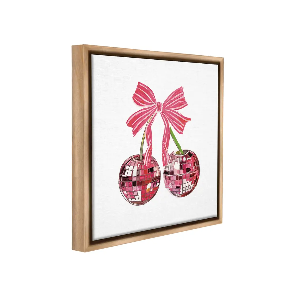 Elevate your home or office to the next level with Stupell Framed Floating Canvas Wall Art. Our premium hand-stretched canvas is mounted securely into a sturdy lightweight frame. The museum-style gap between the wrapped canvas and the box frame gives the illusion of floating artwork. Stupell Wall Art is made in the USA.Features: Dimensions: 18 x 1.7 x 18 Frame, 17 x 1.5 x 17 Canvas ArtFloating Frame Canvas Products are available in sizes 18"x18" and 25"x25". All Floating Frame Canvas Products have a 1.7" Depth.Wall Art is Ready to Hang with Hardware Free Hanging. No Installation required. For Easy Set Up Lean or Layer Artwork on Shelf or Against Wall. Artwork is Permently Fixed into the Frame.Our elevated 1.7" Thick Floating Frame is the perfect complement to our canvas style Wall Art. We use only the highest quality inks in house with industry leading printing solutions. Canvas is hand stretched over a durable wood foundation and then mounted securly into a Modern Box Frame. Made in the USA.Artwork Relates To: Dance, Music, Disco, Pattern, Fruit, Cherry, Geometric, GlamDesign by Amelia Noyes