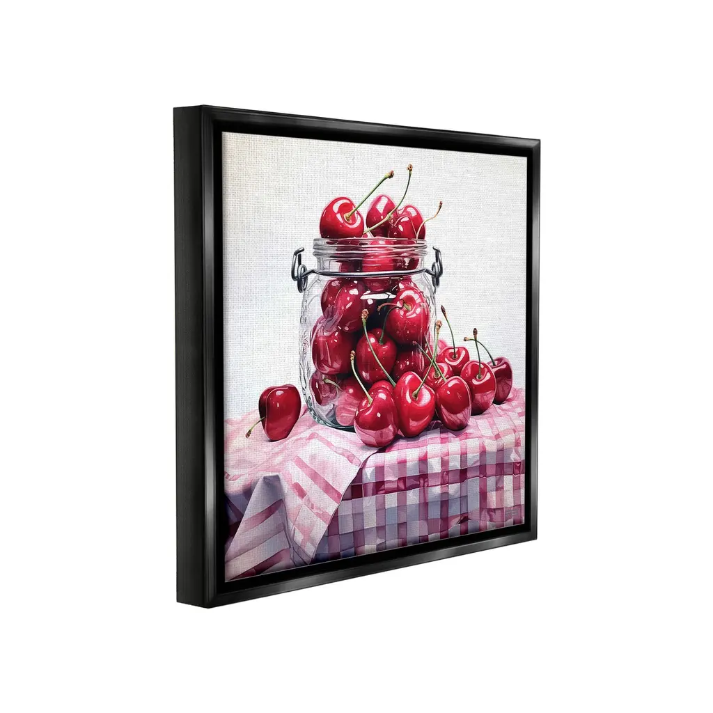 Stupell Cherries In Country Jar Framed Floater Canvas Wall Art Design By Rb - 18 X 18 - Black