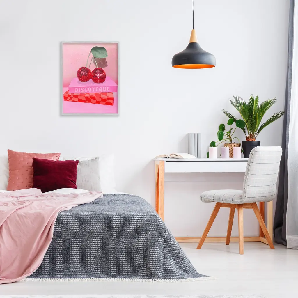 Add dimension to any room with our textured Framed Giclee Artwork. Our framed artwork is securely mounted into a 1.5-inch thick wood grain frame and ready to hang. Frames are available in three alluring styles: black, gray farmhouse and white. In addition, you should check out our oversized options if you want a statement piece. Stupell Wall Art is made in the USA.Features: Dimensions: 11 x 1.5 x 14 FramedFramed Giclee Products are available in the sizes 11"x14", 16"x20" or 24"x30". All Framed Giclee Products have a 1.5" Depth. Wall Art is Ready to Hang with Hardware Free Hanging. No installation required. For Easy Set Up Lean or Layer Artwork on Shelf or Against Wall.Our giclée prints are carefully mounted on a durable MDF backing, and then perfectly finished in a 1.5 inch thick woodgrain frame. Mounted frame colors include black, gray farmhouse and white. Made In USA.Artwork Relates To: Dance, Music, Disco, Pattern, Abstract, Shape, Modern, Glam, Books, Cherry, Fruit, DiscotequeDesign by Lil' Rue