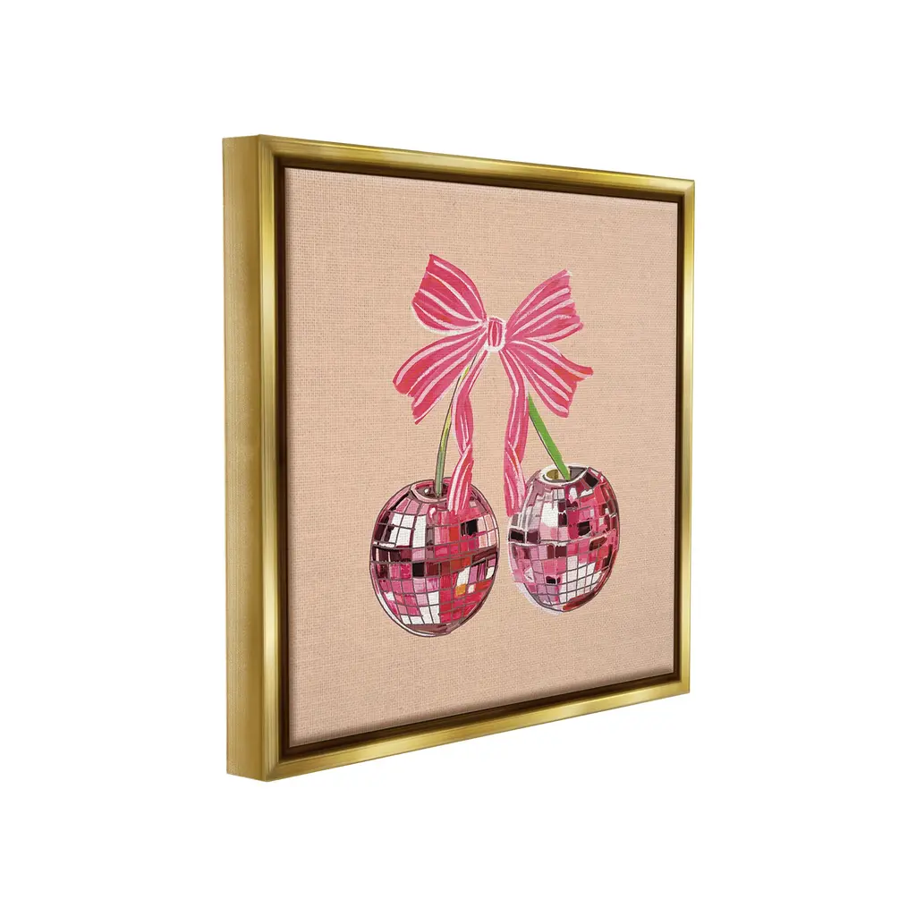 Elevate your home or office to the next level with Stupell Framed Floating Canvas Wall Art. Our premium hand-stretched canvas is mounted securely into a sturdy lightweight frame. The museum-style gap between the wrapped canvas and the box frame gives the illusion of floating artwork. Stupell Wall Art is made in the USA.Features: Dimensions: 18 x 1.7 x 18 Frame, 17 x 1.5 x 17 Canvas ArtFloating Frame Canvas Products are available in sizes 18"x18" and 25"x25". All Floating Frame Canvas Products have a 1.7" Depth.Wall Art is Ready to Hang with Hardware Free Hanging. No Installation required. For Easy Set Up Lean or Layer Artwork on Shelf or Against Wall. Artwork is Permently Fixed into the Frame.Our elevated 1.7" Thick Floating Frame is the perfect complement to our canvas style Wall Art. We use only the highest quality inks in house with industry leading printing solutions. Canvas is hand stretched over a durable wood foundation and then mounted securly into a Modern Box Frame. Made in the USA.Artwork Relates To: Dance, Music, Disco, Pattern, Fruit, Cherry, Geometric, GlamDesign by Amelia Noyes