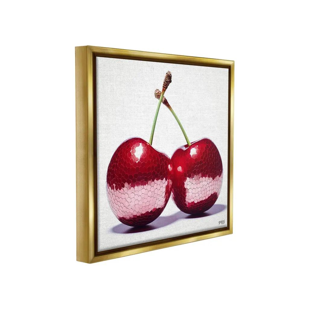 Stupell Cherries With Reflection Framed Floater Canvas Wall Art Design By Rb - 18 X 18 - Gold