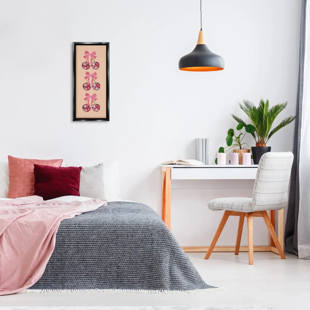 Elevate your home or office to the next level with Stupell Framed Floating Canvas Wall Art. Our premium hand-stretched canvas is mounted securely into a sturdy lightweight frame. The museum-style gap between the wrapped canvas and the box frame gives the illusion of floating artwork. Stupell Wall Art is made in the USA.Features: Dimensions: 11 x 1.7 x 25 Frame, 10 x 1.5 x 24 Canvas ArtFloating Frame Canvas Products are available in sizes 11"x25" and 14"x31". All Floating Frame Canvas Products have a 1.7" Depth.Wall Art is Ready to Hang with Hardware Free Hanging. No Installation required. For Easy Set Up Lean or Layer Artwork on Shelf or Against Wall. Artwork is Permently Fixed into the Frame.Our elevated 1.7" Thick Floating Frame is the perfect complement to our canvas style Wall Art. We use only the highest quality inks in house with industry leading printing solutions. Canvas is hand stretched over a durable wood foundation and then mounted securly into a Modern Box Frame. Made in the USA.Artwork Relates To: Dance, Music, Disco, Pattern, Fruit, Cherry, Geometric, GlamDesign by Amelia Noyes