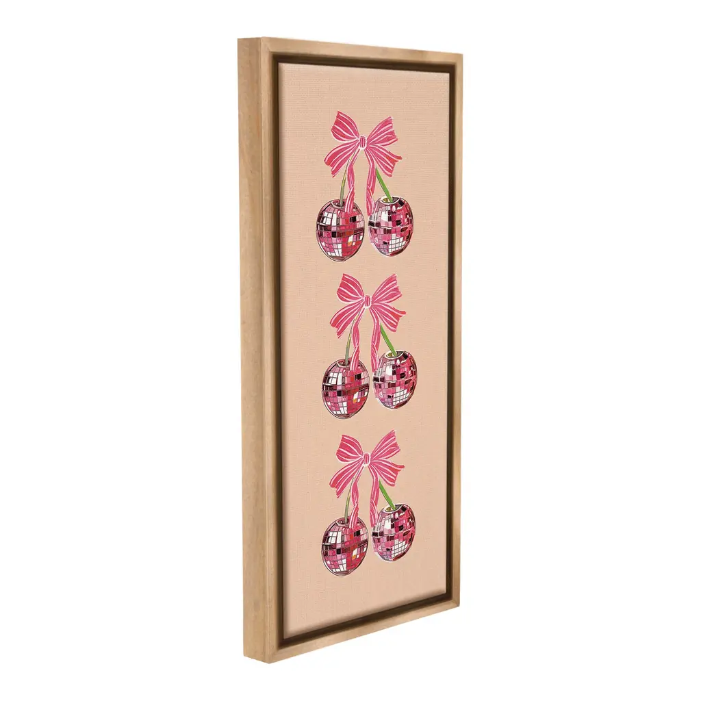 Elevate your home or office to the next level with Stupell Framed Floating Canvas Wall Art. Our premium hand-stretched canvas is mounted securely into a sturdy lightweight frame. The museum-style gap between the wrapped canvas and the box frame gives the illusion of floating artwork. Stupell Wall Art is made in the USA.Features: Dimensions: 11 x 1.7 x 25 Frame, 10 x 1.5 x 24 Canvas ArtFloating Frame Canvas Products are available in sizes 11"x25" and 14"x31". All Floating Frame Canvas Products have a 1.7" Depth.Wall Art is Ready to Hang with Hardware Free Hanging. No Installation required. For Easy Set Up Lean or Layer Artwork on Shelf or Against Wall. Artwork is Permently Fixed into the Frame.Our elevated 1.7" Thick Floating Frame is the perfect complement to our canvas style Wall Art. We use only the highest quality inks in house with industry leading printing solutions. Canvas is hand stretched over a durable wood foundation and then mounted securly into a Modern Box Frame. Made in the USA.Artwork Relates To: Dance, Music, Disco, Pattern, Fruit, Cherry, Geometric, GlamDesign by Amelia Noyes