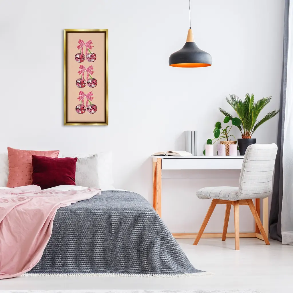 Elevate your home or office to the next level with Stupell Framed Floating Canvas Wall Art. Our premium hand-stretched canvas is mounted securely into a sturdy lightweight frame. The museum-style gap between the wrapped canvas and the box frame gives the illusion of floating artwork. Stupell Wall Art is made in the USA.Features: Dimensions: 11 x 1.7 x 25 Frame, 10 x 1.5 x 24 Canvas ArtFloating Frame Canvas Products are available in sizes 11"x25" and 14"x31". All Floating Frame Canvas Products have a 1.7" Depth.Wall Art is Ready to Hang with Hardware Free Hanging. No Installation required. For Easy Set Up Lean or Layer Artwork on Shelf or Against Wall. Artwork is Permently Fixed into the Frame.Our elevated 1.7" Thick Floating Frame is the perfect complement to our canvas style Wall Art. We use only the highest quality inks in house with industry leading printing solutions. Canvas is hand stretched over a durable wood foundation and then mounted securly into a Modern Box Frame. Made in the USA.Artwork Relates To: Dance, Music, Disco, Pattern, Fruit, Cherry, Geometric, GlamDesign by Amelia Noyes