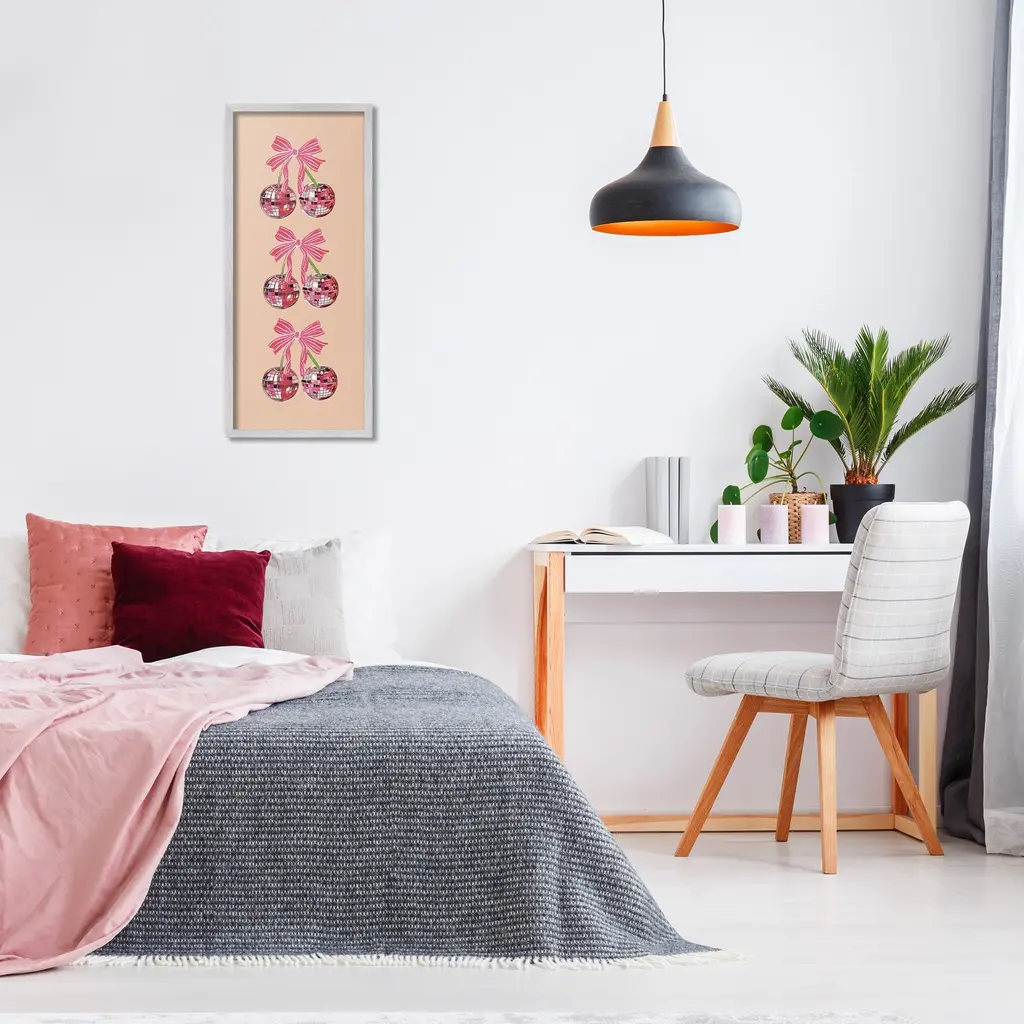 Add dimension to any room with our textured Framed Giclee Artwork. Our framed artwork is securely mounted into a 1.5-inch thick wood grain frame and ready to hang. Frames are available in three alluring styles: black, gray farmhouse and white. In addition, you should check out our oversized options if you want a statement piece. Stupell Wall Art is made in the USA.Features: Dimensions: 10 x 1.5 x 24 FramedFramed Giclee Product Sizes include 10"x24" and 13"x30". All Framed Giclee products have a 1.5" Depth.Wall Art is Ready to Hang with Hardware Free Hanging. No installation required. For Easy Set Up Lean or Layer Artwork on Shelf or Against Wall.Our giclée prints are carefully mounted on a durable MDF backing, and then perfectly finished in a 1.5 inch thick woodgrain frame. Mounted frame colors include black, gray farmhouse and white. Made In USA.Artwork Relates To: Dance, Music, Disco, Pattern, Fruit, Cherry, Geometric, GlamDesign by Amelia Noyes