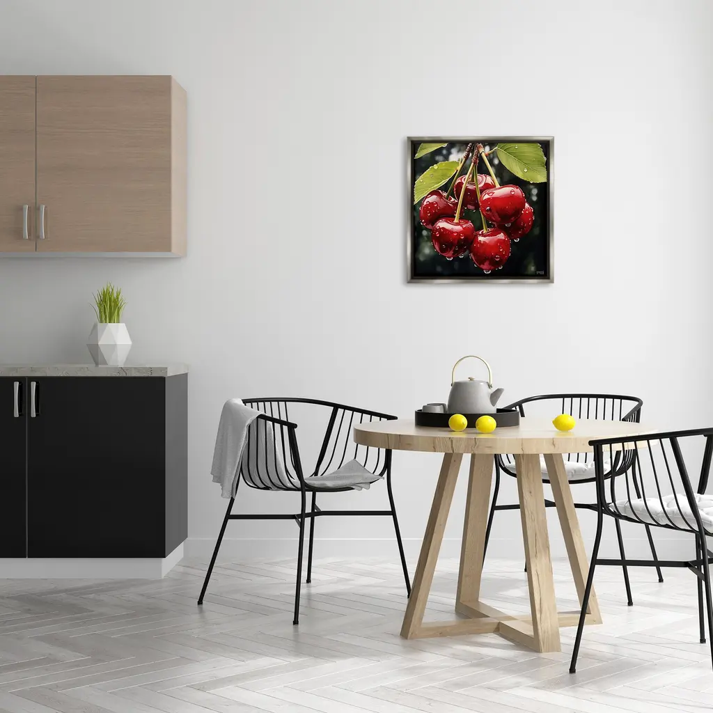 Stupell Cherries With Water Droplets Framed Floater Canvas Wall Art Design By Rb - 25 X 25 - Grey