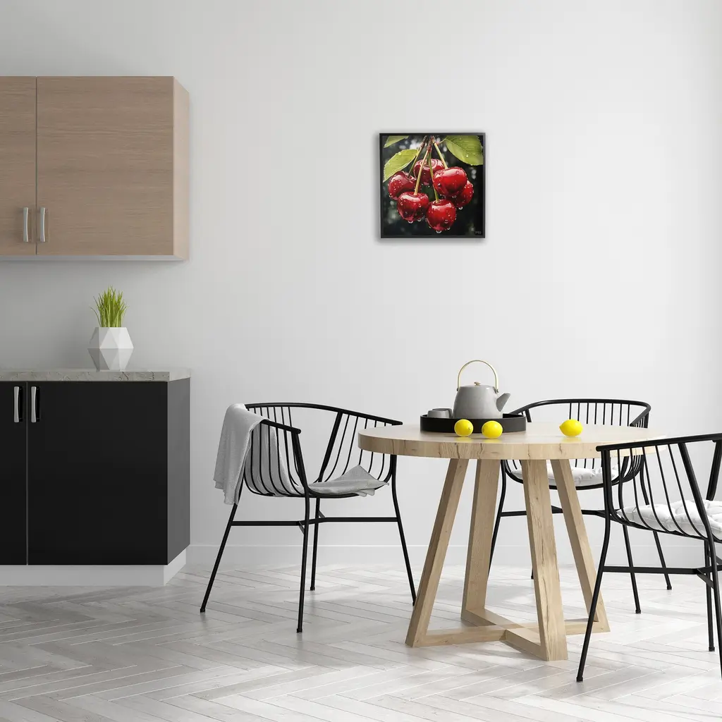 Add dimension to any room with our textured Framed Giclee Artwork. Our framed artwork is securely mounted into a 1.5-inch thick wood grain frame and ready to hang. Frames are available in three alluring styles: black, gray farmhouse and white. In addition, you should check out our oversized options if you want a statement piece. Stupell Wall Art is made in the USA.Features: Dimensions: 12 x 1.5 x 12 FramedFramed Giclee Product Sizes Include 12"x12", 17"x17", and 24"x24". Framed Giclee Products have a 1.5" Depth. Wall Art is Ready to Hang with Hardware Free Hanging. No installation required. For Easy Set Up Lean or Layer Artwork on Shelf or Against Wall.Our giclée prints are carefully mounted on a durable MDF backing, and then perfectly finished in a 1.5 inch thick woodgrain frame. Mounted frame colors include black, gray farmhouse and white. Made In USA.Artwork Relates To: Food, Fruit, Plant, Produce, Cherry, Nature, Summer, Spring, WaterDesign by RB