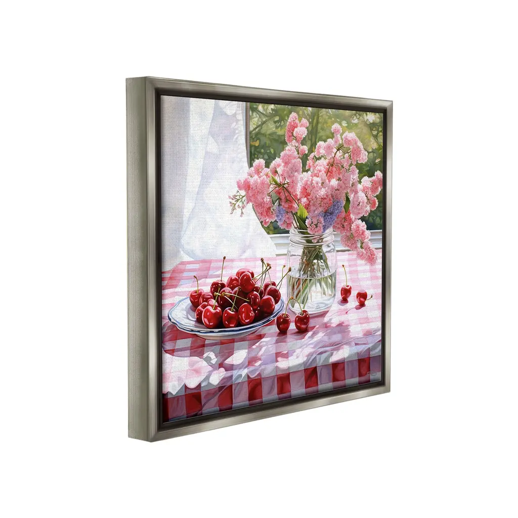 Elevate your home or office to the next level with Stupell Framed Floating Canvas Wall Art. Our premium hand-stretched canvas is mounted securely into a sturdy lightweight frame. The museum-style gap between the wrapped canvas and the box frame gives the illusion of floating artwork. Stupell Wall Art is made in the USA.Features: Dimensions: 18 x 1.7 x 18 Frame, 17 x 1.5 x 17 Canvas ArtFloating Frame Canvas Products are available in sizes 18"x18" and 25"x25". All Floating Frame Canvas Products have a 1.7" Depth.Wall Art is Ready to Hang with Hardware Free Hanging. No Installation required. For Easy Set Up Lean or Layer Artwork on Shelf or Against Wall. Artwork is Permently Fixed into the Frame.Our elevated 1.7" Thick Floating Frame is the perfect complement to our canvas style Wall Art. We use only the highest quality inks in house with industry leading printing solutions. Canvas is hand stretched over a durable wood foundation and then mounted securly into a Modern Box Frame. Made in the USA.Artwork Relates To: Food, Fruit, Plant, Produce, Flower, Cherry, Bouquet, Pink, Summer, SpringDesign by RB