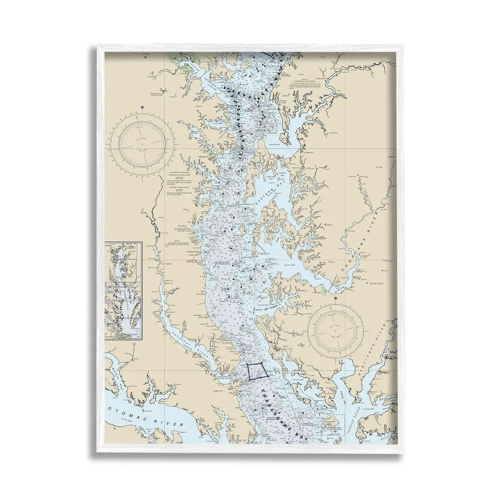 Stupell Chesapeake Bay Water Flow Map Coastal Cartography Framed Wall Art - 11 X 14 - White