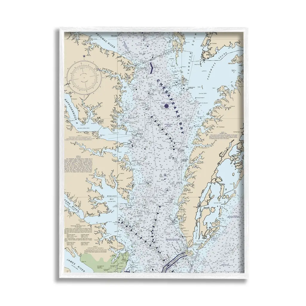 Stupell Chesapeake Bay Water Flow Map Coastal Cartography Framed Wall Art - 16 X 20 - Grey