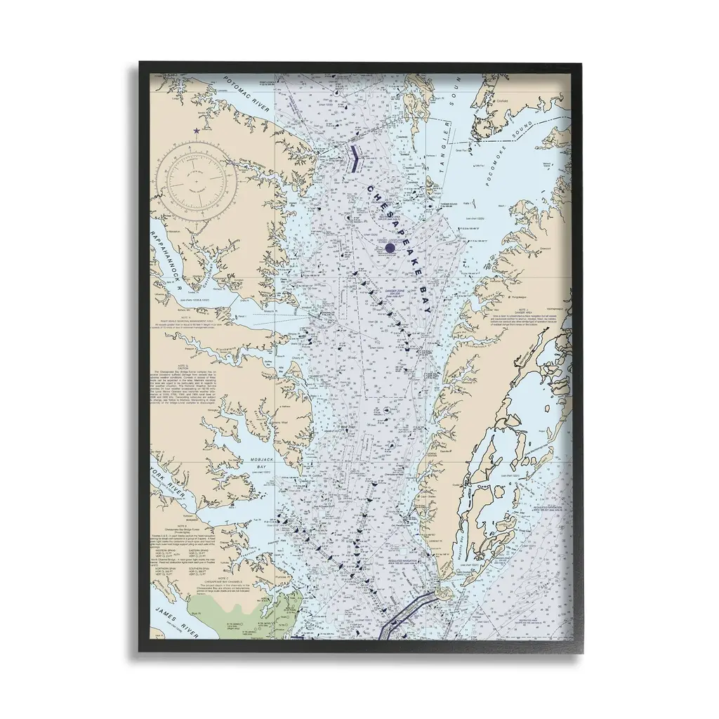 Stupell Chesapeake Bay Water Flow Map Coastal Cartography Framed Wall Art - 16 X 20 - White