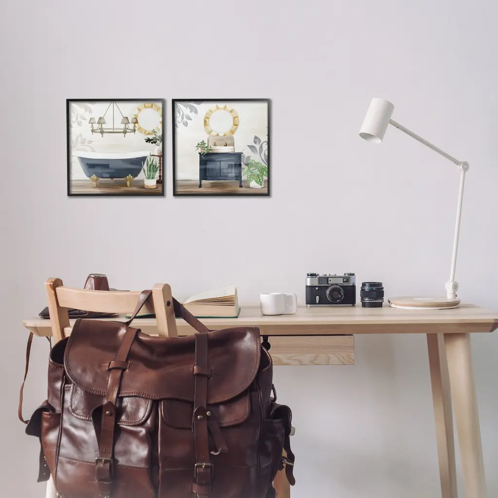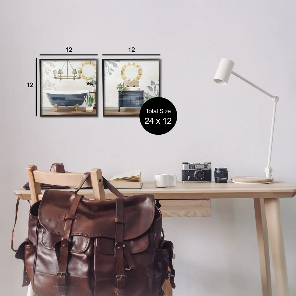 Stupell Chic Bathroom Interior Still Life Bathtub Sink Plants 2Pc Multi Piece Framed Wall Art Set - 12 X 12 - Grey