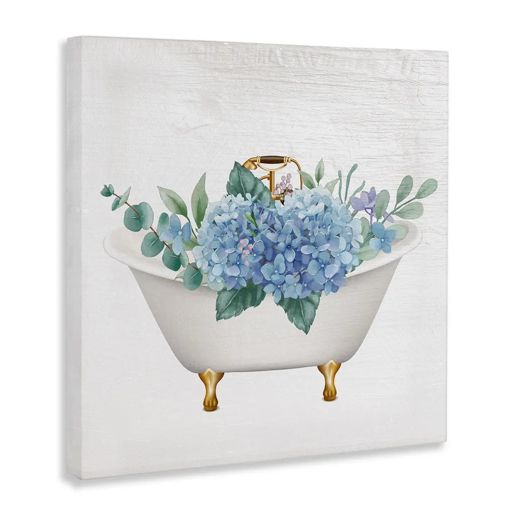 Proudly made in the USA, Our stretched canvas is created with the highest standards. We use only the highest quality inks and canvas on our in house Mimaki printers, and then hand cut and stretch each piece over a 1.5 inch thick wooden frame for hanging. The art comes ready to hang with no installation required.Features: Dimensions: 17 x 1.5 x 17 InchesStretched Canvas Sizes Include Standard: 17 x 1.5 x 17 Large: 24 x 1.5 x 24 X-Large: 30 x 1.5 x 30 Oversized: 36 x 1.5 x 36Wall Art is Ready to Hang - No Installation or Hardware Needed. For Easy Set Up Lean or Layer Artwork on Shelf or Against Wall.Our stretched canvas is created with the highest standards. We use only the highest quality inks and canvas on our in house Mimaki printers, and then hand cut and stretch each piece over a 1.5 inch thick wooden frame for hanging. Made In USA.Artwork Relates To: Bathing, Bathtub, Tub, Plant, Flower, Flower Arrangement, Hydrangea, Floral, BathroomDesign by Lil' Rue