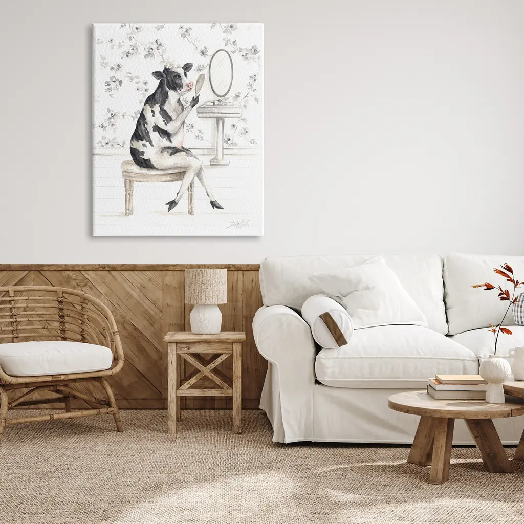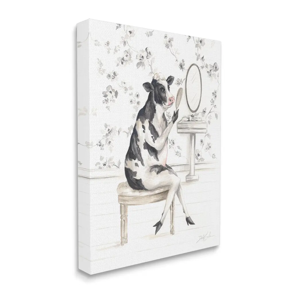 Stupell Chic Cow In Bathroom Canvas Wall Art Design By Debi Coules - 36 X 48