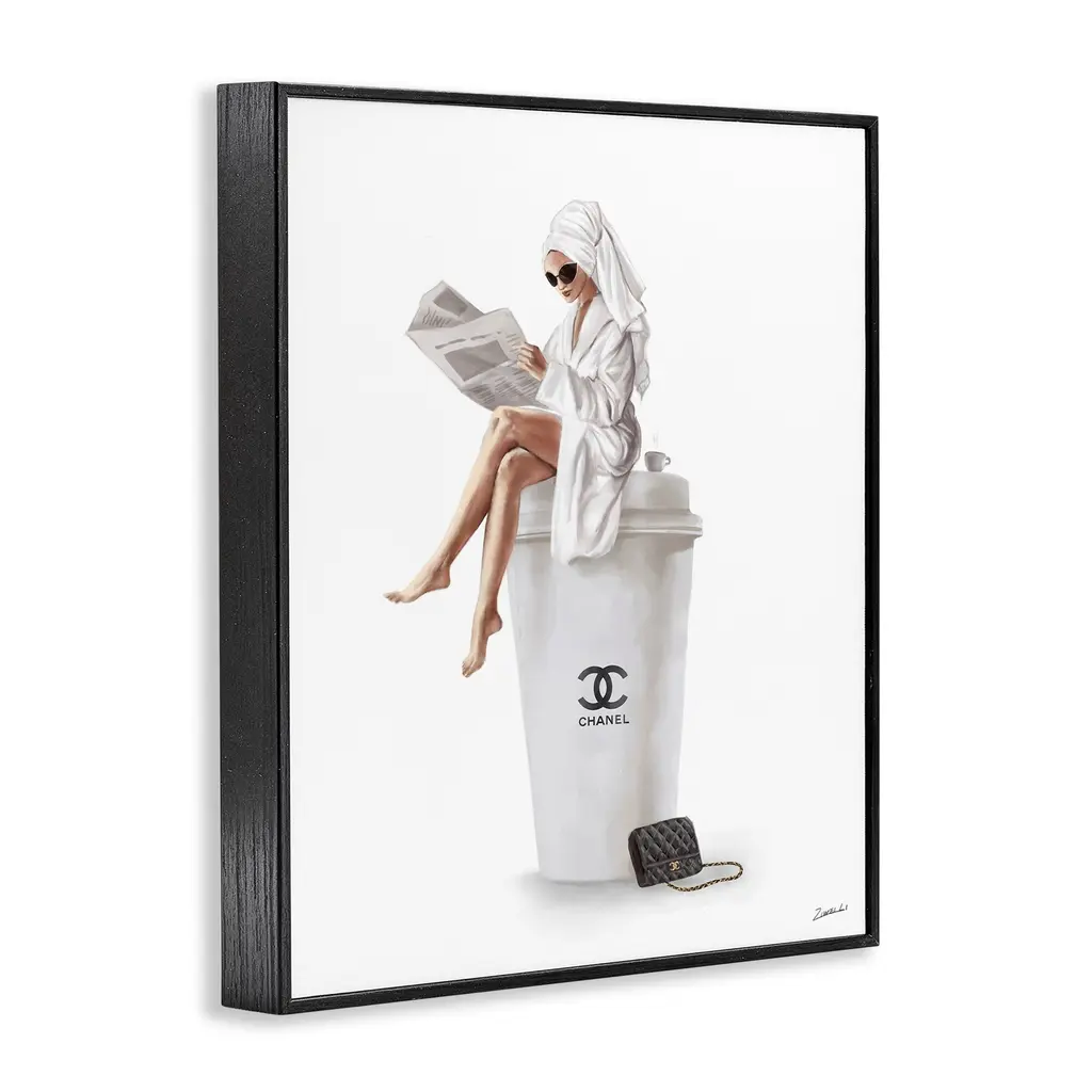 Stupell Chic Fashion Coffee And Purse Female Robe Pose Framed Giclee Texturized Art By Ziwei Li - 11 X 14 - Black