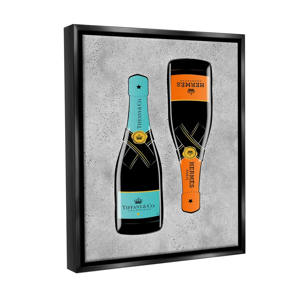 Elevate your home or office to the next level with Stupell Framed Floating Canvas Wall Art. Our premium hand-stretched canvas is mounted securely into a sturdy lightweight frame. The museum-style gap between the wrapped canvas and the box frame gives the illusion of floating artwork. Stupell Wall Art is made in the USA.Features: Dimensions: 17 x 1.7 x 21 Frame, 16 x 1.5 x 20 Canvas ArtFloating Frame Canvas Products are available in sizes 17"x21" and 25"x31". All Floating Frame Canvas Products have a 1.7" Depth.Wall Art is Ready to Hang with Hardware Free Hanging. No Installation required. For Easy Set Up Lean or Layer Artwork on Shelf or Against Wall. Artwork is Permently Fixed into the Frame.Our elevated 1.7" Thick Floating Frame is the perfect complement to our canvas style Wall Art. We use only the highest quality inks in house with industry leading printing solutions. Canvas is hand stretched over a durable wood foundation and then mounted securly into a Modern Box Frame. Made in the USA.Artwork Relates To: Glam, Fashion, Bottle, Liquor, Wine, Champagne, PatternDesign by Martina Pavlova