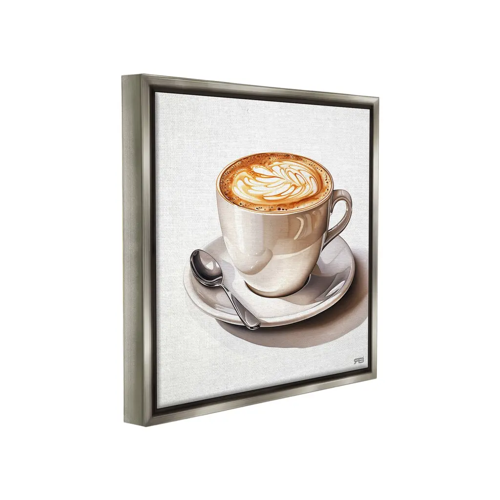 Elevate your home or office to the next level with Stupell Framed Floating Canvas Wall Art. Our premium hand-stretched canvas is mounted securely into a sturdy lightweight frame. The museum-style gap between the wrapped canvas and the box frame gives the illusion of floating artwork. Stupell Wall Art is made in the USA.Features: Dimensions: 18 x 1.7 x 18 Frame, 17 x 1.5 x 17 Canvas ArtFloating Frame Canvas Products are available in sizes 18"x18" and 25"x25". All Floating Frame Canvas Products have a 1.7" Depth.Wall Art is Ready to Hang with Hardware Free Hanging. No Installation required. For Easy Set Up Lean or Layer Artwork on Shelf or Against Wall. Artwork is Permently Fixed into the Frame.Our elevated 1.7" Thick Floating Frame is the perfect complement to our canvas style Wall Art. We use only the highest quality inks in house with industry leading printing solutions. Canvas is hand stretched over a durable wood foundation and then mounted securly into a Modern Box Frame. Made in the USA.Artwork Relates To: Cup, Coffee, Latte, Glass, Straw, Cafe, Espresso, Beverage, Brunch, KitchenDesign by RB