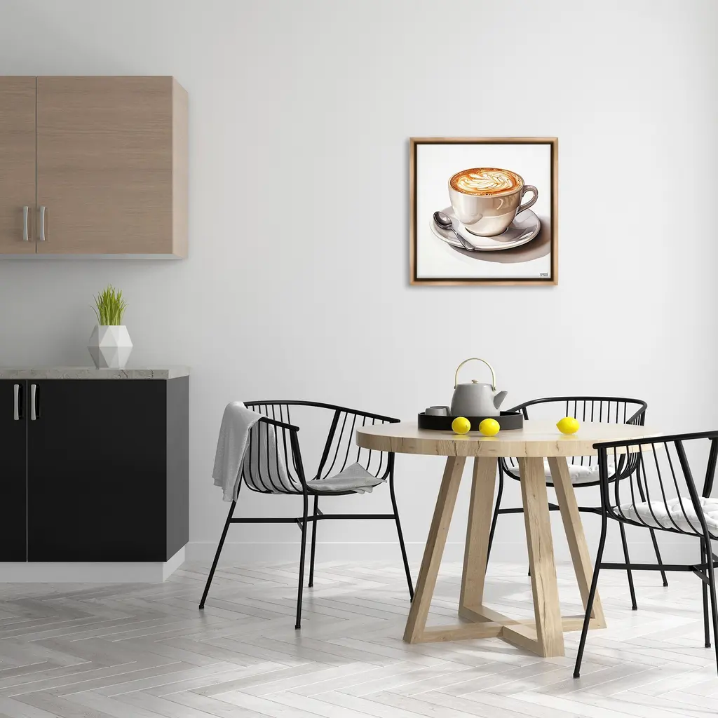 Elevate your home or office to the next level with Stupell Framed Floating Canvas Wall Art. Our premium hand-stretched canvas is mounted securely into a sturdy lightweight frame. The museum-style gap between the wrapped canvas and the box frame gives the illusion of floating artwork. Stupell Wall Art is made in the USA.Features: Dimensions: 18 x 1.7 x 18 Frame, 17 x 1.5 x 17 Canvas ArtFloating Frame Canvas Products are available in sizes 18"x18" and 25"x25". All Floating Frame Canvas Products have a 1.7" Depth.Wall Art is Ready to Hang with Hardware Free Hanging. No Installation required. For Easy Set Up Lean or Layer Artwork on Shelf or Against Wall. Artwork is Permently Fixed into the Frame.Our elevated 1.7" Thick Floating Frame is the perfect complement to our canvas style Wall Art. We use only the highest quality inks in house with industry leading printing solutions. Canvas is hand stretched over a durable wood foundation and then mounted securly into a Modern Box Frame. Made in the USA.Artwork Relates To: Cup, Coffee, Latte, Glass, Straw, Cafe, Espresso, Beverage, Brunch, KitchenDesign by RB