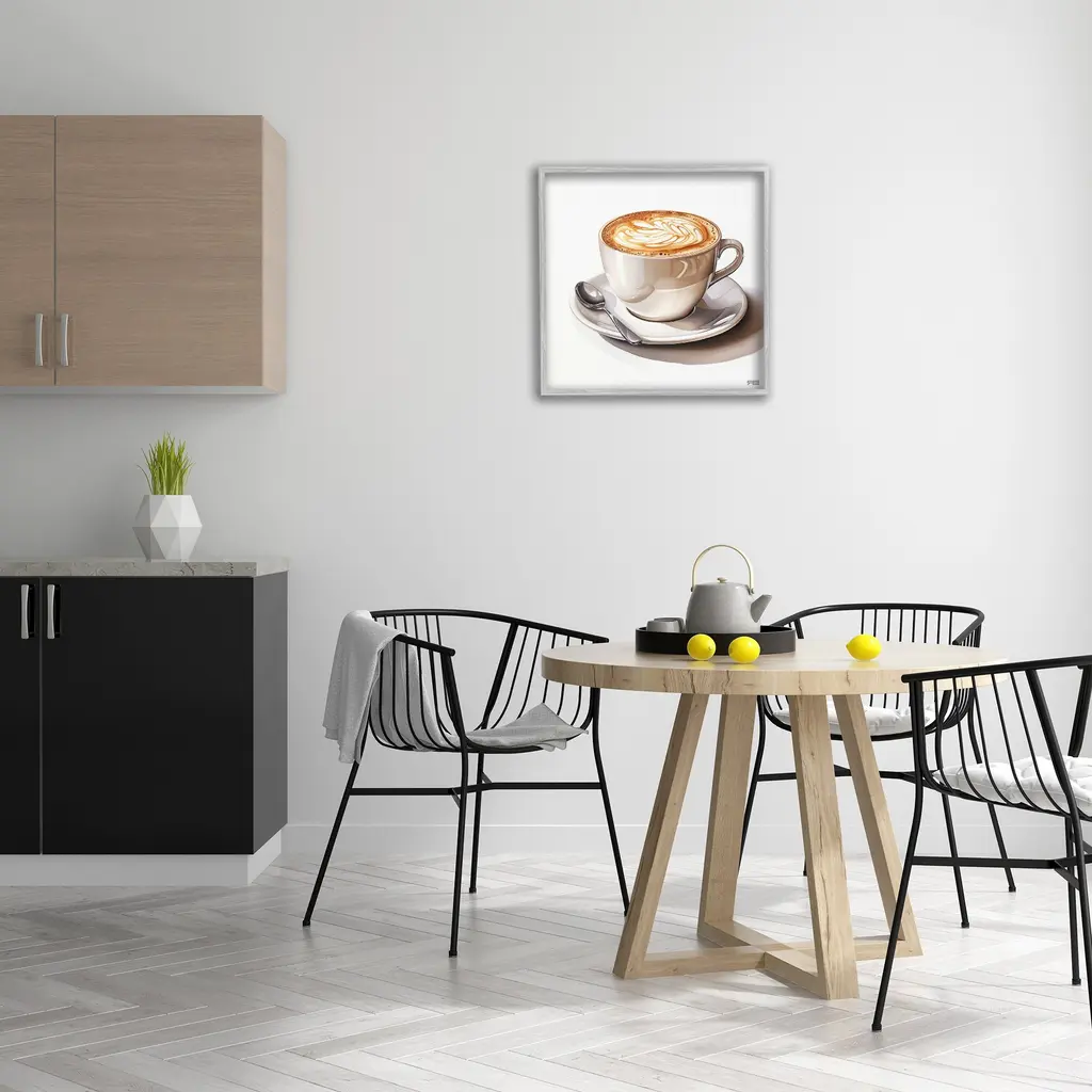 Add dimension to any room with our textured Framed Giclee Artwork. Our framed artwork is securely mounted into a 1.5-inch thick wood grain frame and ready to hang. Frames are available in three alluring styles: black, gray farmhouse and white. In addition, you should check out our oversized options if you want a statement piece. Stupell Wall Art is made in the USA.Features: Dimensions: 12 x 1.5 x 12 FramedFramed Giclee Product Sizes Include 12"x12", 17"x17", and 24"x24". Framed Giclee Products have a 1.5" Depth. Wall Art is Ready to Hang with Hardware Free Hanging. No installation required. For Easy Set Up Lean or Layer Artwork on Shelf or Against Wall.Our giclée prints are carefully mounted on a durable MDF backing, and then perfectly finished in a 1.5 inch thick woodgrain frame. Mounted frame colors include black, gray farmhouse and white. Made In USA.Artwork Relates To: Cup, Coffee, Latte, Glass, Straw, Cafe, Espresso, Beverage, Brunch, KitchenDesign by RB
