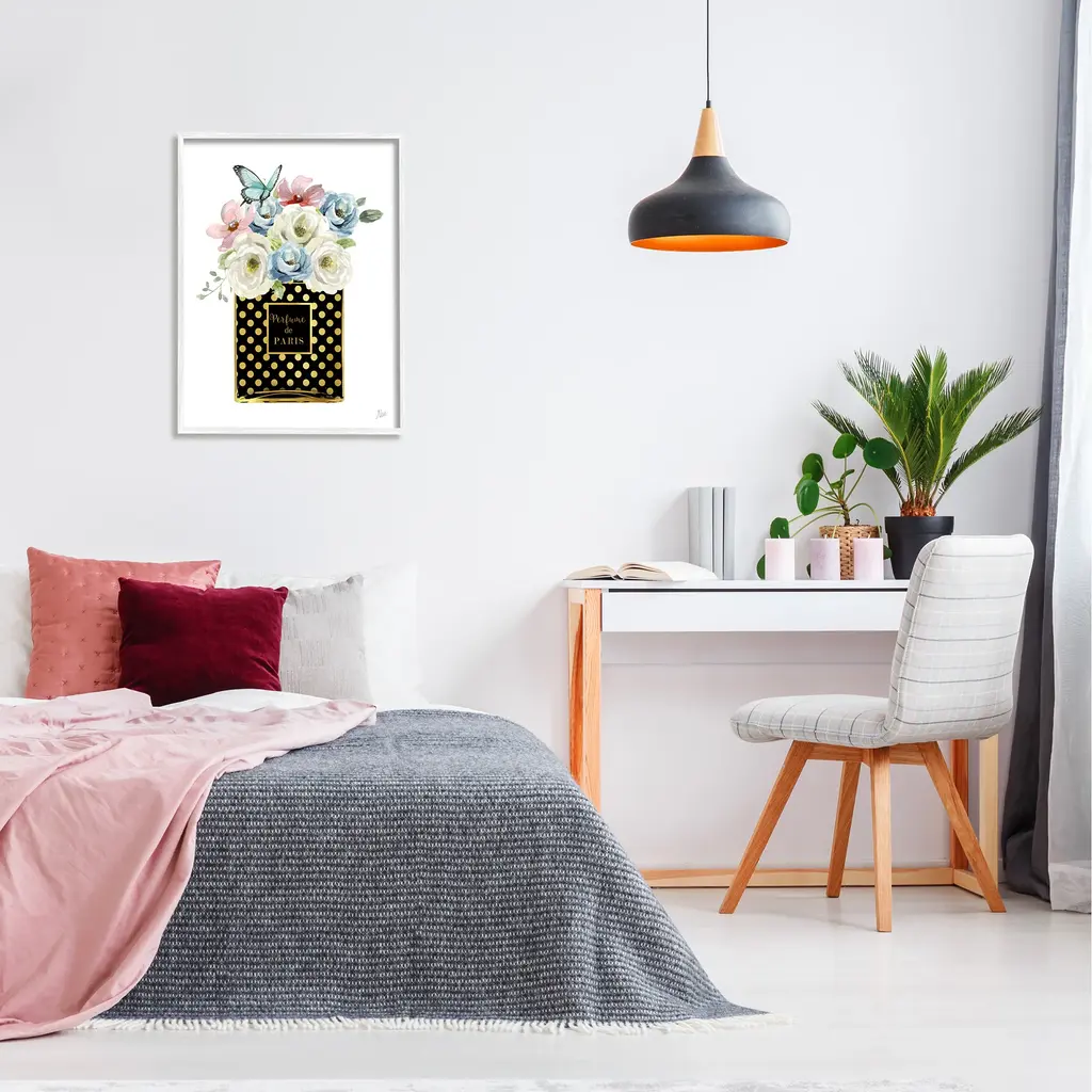 Our wall plaques start as high-quality lithograph prints mounted on durable 0.5-inch thick MDF wood. Each piece is hand finished and comes with a fresh layer of white foil on the sides to give it a crisp, clean look. Plaques arrive ready to hang without installation and come with removable plastic corners to keep them from damage in transit. Wall Art is made in the USA.Features: Dimensions: 12 x 0.5 x 12 InchesWall Art is Ready to Hang with Hardware Free Hanging. No installation required. For Easy Set Up Lean or Layer Artwork on Shelf or Against Wall.All of our wall plaques start off as high quality lithograph prints that are then mounted on durable 0.5 inch thick MDF wood. Each piece is hand finished and comes with a fresh layer of foil on the sides to give it a crisp clean look. Made In USA.Artwork Relates To: Bottle, Plant, Flower, Petal, Flower Arrangement, Perfume, Anemone, Flower Bouquet, Floral, Geranium, GlamDesign by Nan
