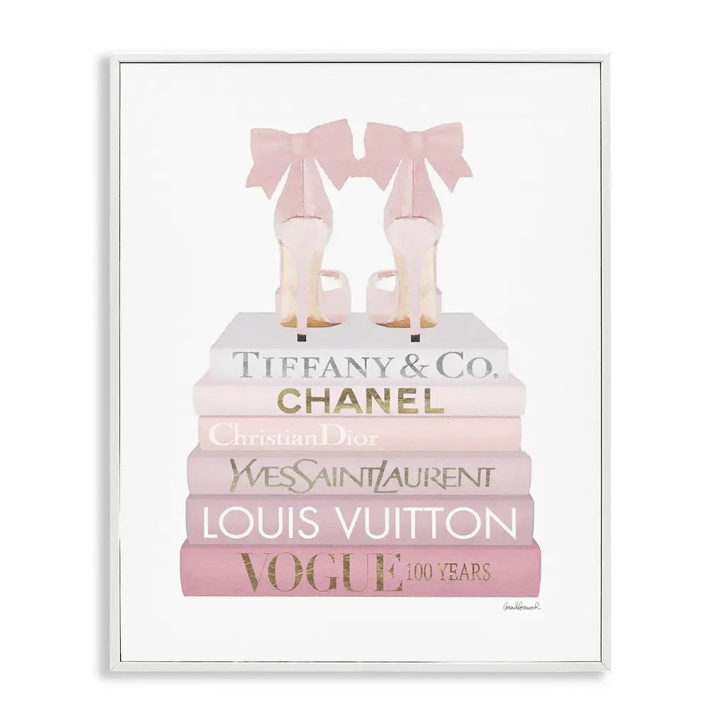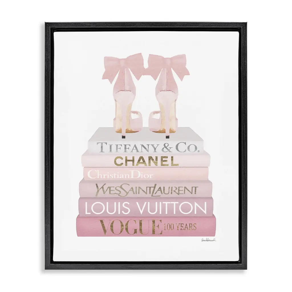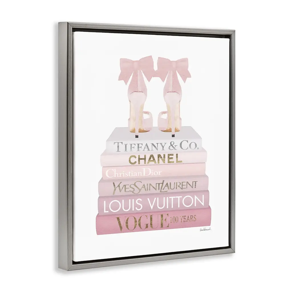 Elevate your home or office to the next level with Stupell Framed Floating Canvas Wall Art. Our premium hand-stretched canvas is mounted securely into a sturdy lightweight frame. The museum-style gap between the wrapped canvas and the box frame gives the illusion of floating artwork. Stupell Wall Art is made in the USA.Features: Dimensions: 17 x 1.7 x 21 Frame, 16 x 1.5 x 20 Canvas ArtFloating Frame Canvas Products are available in sizes 17"x21" and 25"x31". All Floating Frame Canvas Products have a 1.7" Depth.Wall Art is Ready to Hang with Hardware Free Hanging. No Installation required. For Easy Set Up Lean or Layer Artwork on Shelf or Against Wall. Artwork is Permently Fixed into the Frame.Our elevated 1.7" Thick Floating Frame is the perfect complement to our canvas style Wall Art. We use only the highest quality inks in house with industry leading printing solutions. Canvas is hand stretched over a durable wood foundation and then mounted securly into a Modern Box Frame. Made in the USA.Artwork Relates To: Glam, Fashion, Bookstack, Heels, Shoes, PinkDesign by Amanda Greenwood
