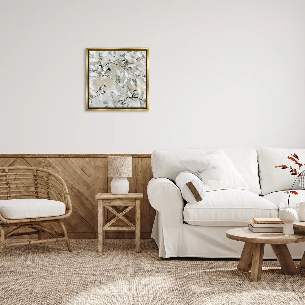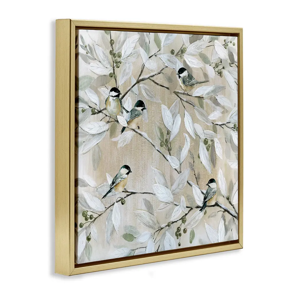 Elevate your home or office to the next level with Stupell Framed Floating Canvas Wall Art. Our premium hand-stretched canvas is mounted securely into a sturdy lightweight frame. The museum-style gap between the wrapped canvas and the box frame gives the illusion of floating artwork. Stupell Wall Art is made in the USA.Features: Dimensions: 18 x 1.7 x 18 Frame, 17 x 1.5 x 17 Canvas ArtFloating Frame Canvas Products are available in sizes 18"x18" and 25"x25". All Floating Frame Canvas Products have a 1.7" Depth.Wall Art is Ready to Hang with Hardware Free Hanging. No Installation required. For Easy Set Up Lean or Layer Artwork on Shelf or Against Wall. Artwork is Permently Fixed into the Frame.Our elevated 1.7" Thick Floating Frame is the perfect complement to our canvas style Wall Art. We use only the highest quality inks in house with industry leading printing solutions. Canvas is hand stretched over a durable wood foundation and then mounted securly into a Modern Box Frame. Made in the USA.Artwork Relates To: Birds, Trees, Branches, Foliage, ChickadeesDesign by Carol Robinson