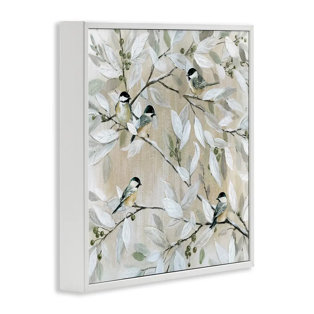 Stupell Chickadee Birds On Tree Branches Soft Berry Fruits Framed Wall Art - 17 X 17 - White