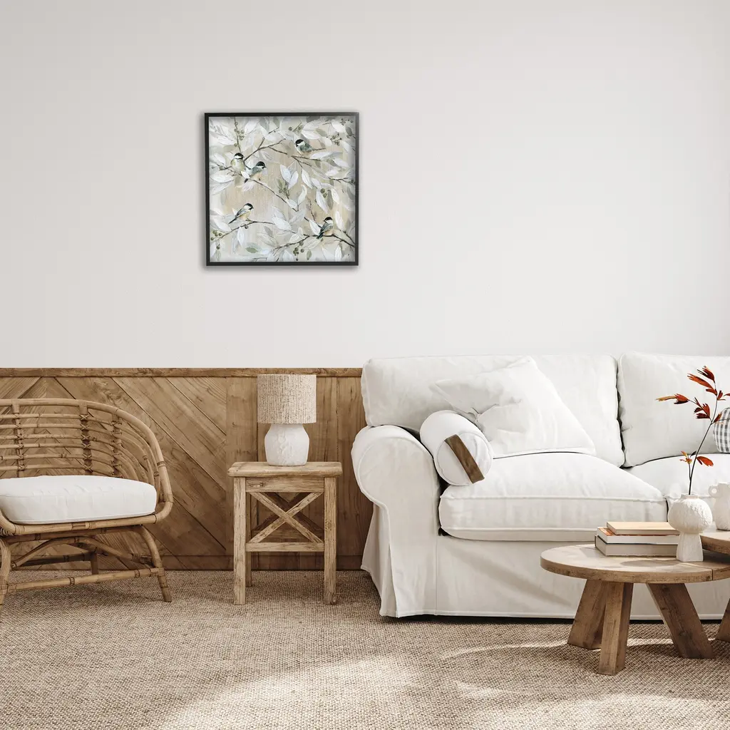 Stupell Chickadee Birds On Tree Branches Soft Berry Fruits Framed Wall Art - 24 X 24 - Black