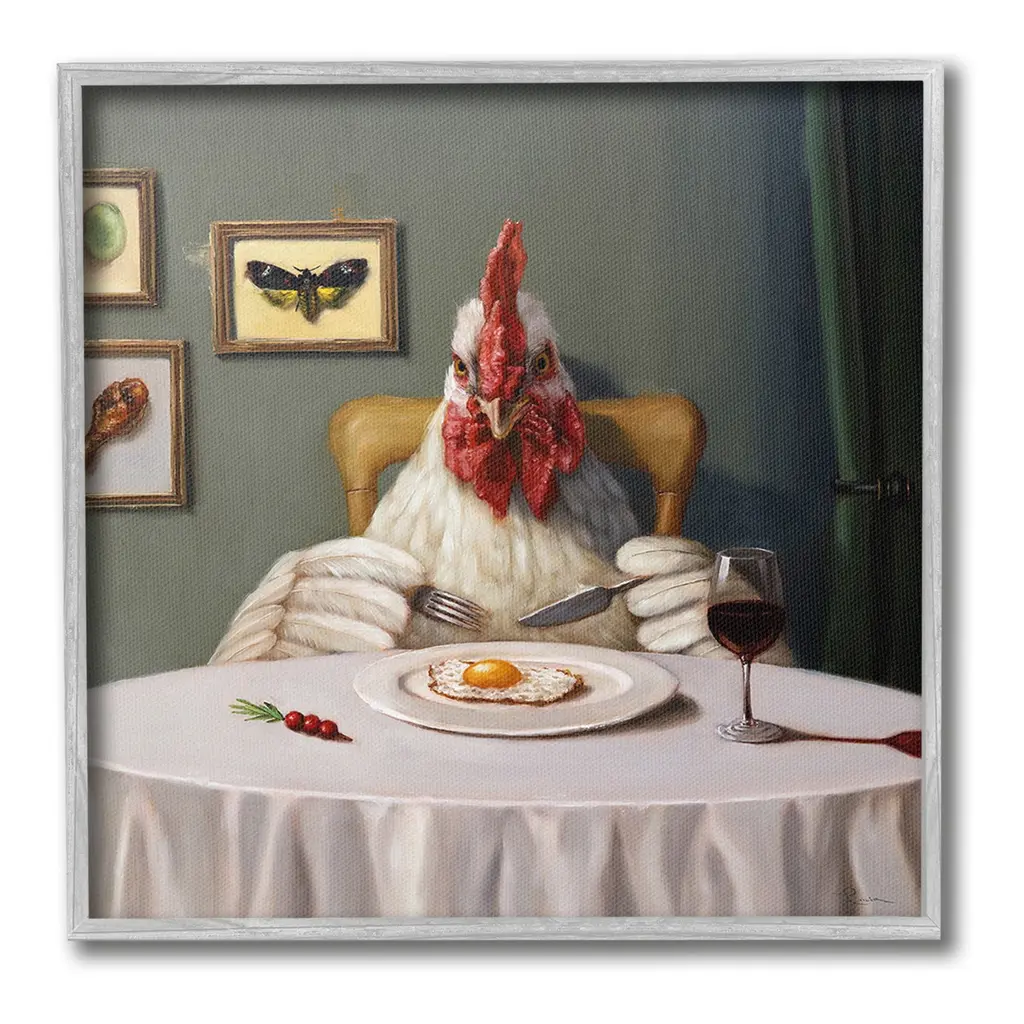 Add dimension to any room with our textured Framed Giclee Artwork. Our framed artwork is securely mounted into a 1.5-inch thick wood grain frame and ready to hang. Frames are available in three alluring styles: black, gray farmhouse and white. In addition, you should check out our oversized options if you want a statement piece. Stupell Wall Art is made in the USA.Features: Dimensions: 12 x 1.5 x 12 FramedFramed Giclee Product Sizes Include 12"x12", 17"x17", and 24"x24". Framed Giclee Products have a 1.5" Depth. Wall Art is Ready to Hang with Hardware Free Hanging. No installation required. For Easy Set Up Lean or Layer Artwork on Shelf or Against Wall.Our giclée prints are carefully mounted on a durable MDF backing, and then perfectly finished in a 1.5 inch thick woodgrain frame. Mounted frame colors include black, gray farmhouse and white. Made In USA.Artwork Relates To: Animal, Bird, Chicken, Alcohol, Beverage, Dining Table, Countryside, Farm, Wine, Wine Glass, Hen, Egg, Humor, FunnyDesign by Lucia Heffernan