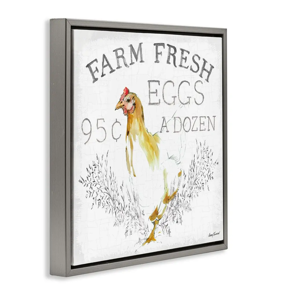 Stupell Chicken Farm Fresh Vintage Sign Framed Floater Canvas Wall Art Design By Avery Tillmon - 25 X 25 - Grey