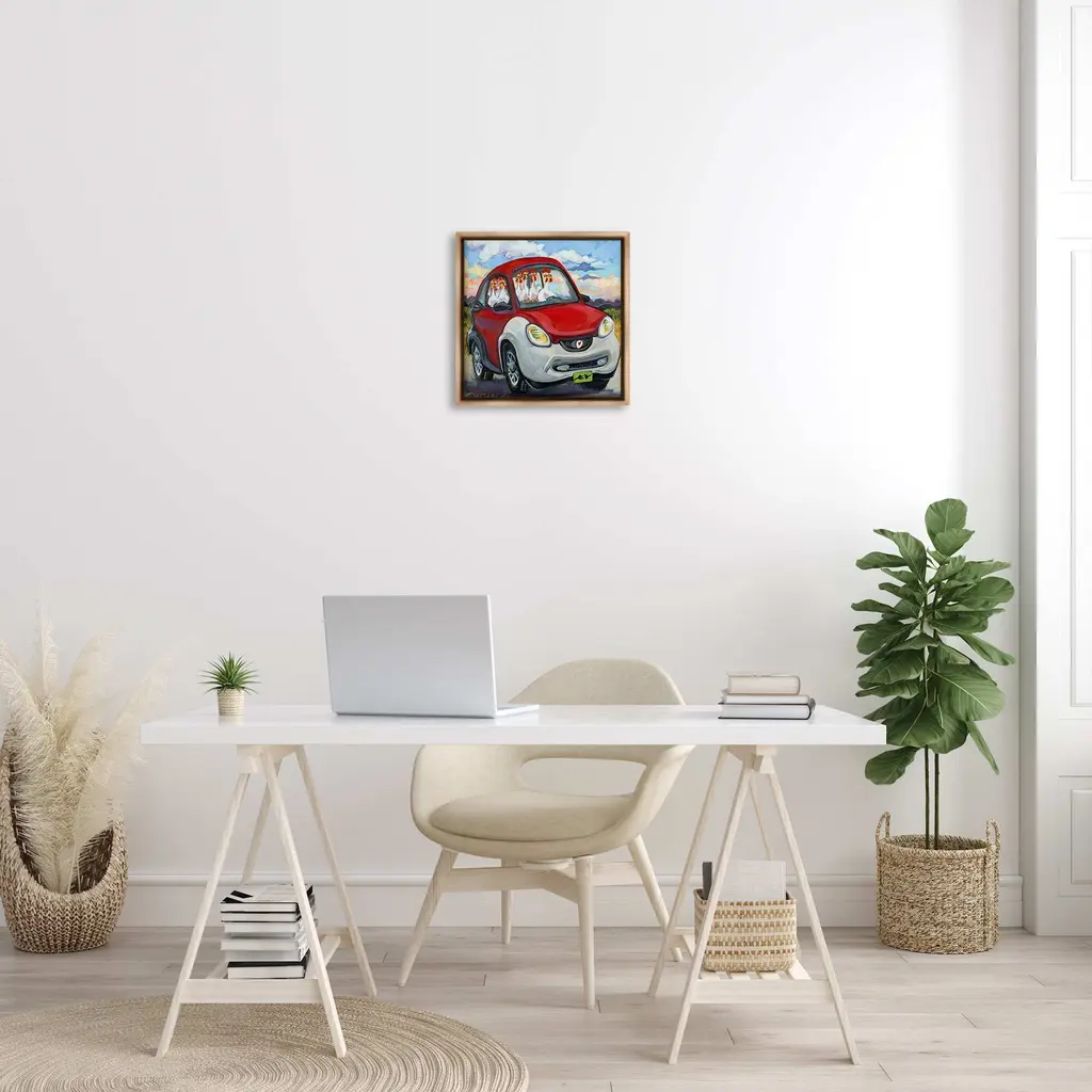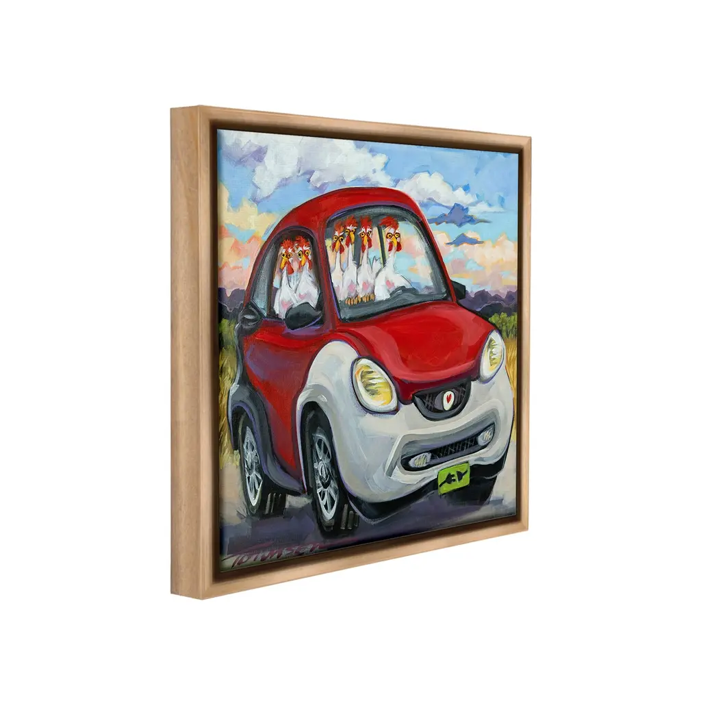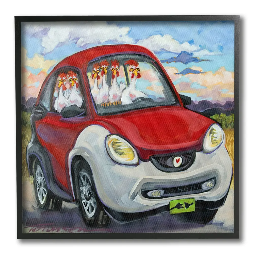 Elevate your home or office to the next level with Stupell Framed Floating Canvas Wall Art. Our premium hand-stretched canvas is mounted securely into a sturdy lightweight frame. The museum-style gap between the wrapped canvas and the box frame gives the illusion of floating artwork. Stupell Wall Art is made in the USA.Features: Dimensions: 18 x 1.7 x 18 Frame, 17 x 1.5 x 17 Canvas ArtFloating Frame Canvas Products are available in sizes 18"x18" and 25"x25". All Floating Frame Canvas Products have a 1.7" Depth.Wall Art is Ready to Hang with Hardware Free Hanging. No Installation required. For Easy Set Up Lean or Layer Artwork on Shelf or Against Wall. Artwork is Permently Fixed into the Frame.Our elevated 1.7" Thick Floating Frame is the perfect complement to our canvas style Wall Art. We use only the highest quality inks in house with industry leading printing solutions. Canvas is hand stretched over a durable wood foundation and then mounted securly into a Modern Box Frame. Made in the USA.Artwork Relates To: Painting, Animal, Car, Modern, Landscape, Driving, Chicken, HenDesign by CR Townsend