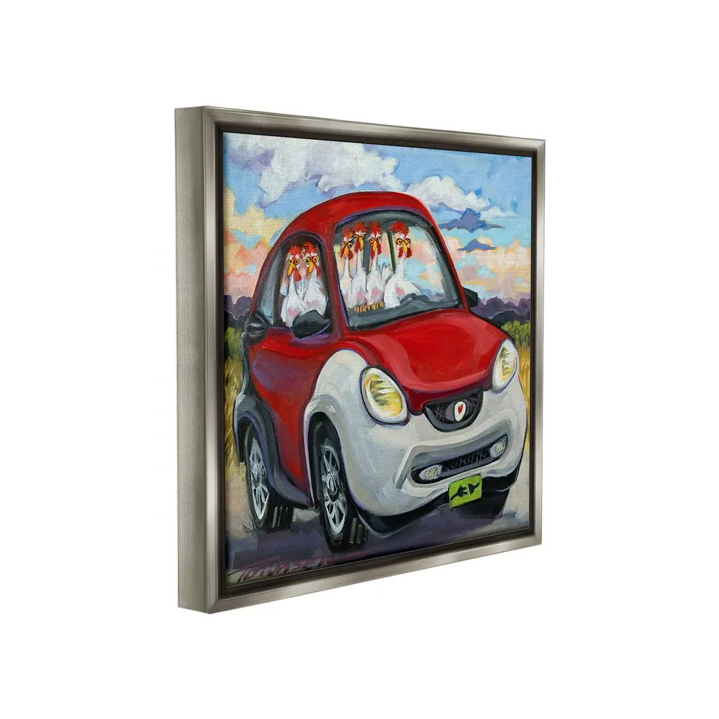 Elevate your home or office to the next level with Stupell Framed Floating Canvas Wall Art. Our premium hand-stretched canvas is mounted securely into a sturdy lightweight frame. The museum-style gap between the wrapped canvas and the box frame gives the illusion of floating artwork. Stupell Wall Art is made in the USA.Features: Dimensions: 18 x 1.7 x 18 Frame, 17 x 1.5 x 17 Canvas ArtFloating Frame Canvas Products are available in sizes 18"x18" and 25"x25". All Floating Frame Canvas Products have a 1.7" Depth.Wall Art is Ready to Hang with Hardware Free Hanging. No Installation required. For Easy Set Up Lean or Layer Artwork on Shelf or Against Wall. Artwork is Permently Fixed into the Frame.Our elevated 1.7" Thick Floating Frame is the perfect complement to our canvas style Wall Art. We use only the highest quality inks in house with industry leading printing solutions. Canvas is hand stretched over a durable wood foundation and then mounted securly into a Modern Box Frame. Made in the USA.Artwork Relates To: Painting, Animal, Car, Modern, Landscape, Driving, Chicken, HenDesign by CR Townsend