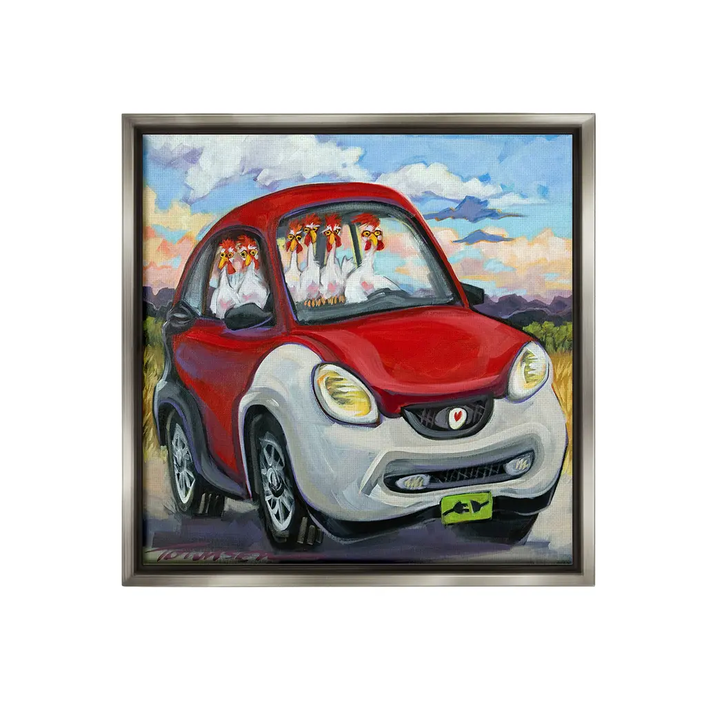 Add dimension to any room with our textured Framed Giclee Artwork. Our framed artwork is securely mounted into a 1.5-inch thick wood grain frame and ready to hang. Frames are available in three alluring styles: black, gray farmhouse and white. In addition, you should check out our oversized options if you want a statement piece. Stupell Wall Art is made in the USA.Features: Dimensions: 12 x 1.5 x 12 FramedFramed Giclee Product Sizes Include 12"x12", 17"x17", and 24"x24". Framed Giclee Products have a 1.5" Depth. Wall Art is Ready to Hang with Hardware Free Hanging. No installation required. For Easy Set Up Lean or Layer Artwork on Shelf or Against Wall.Our giclée prints are carefully mounted on a durable MDF backing, and then perfectly finished in a 1.5 inch thick woodgrain frame. Mounted frame colors include black, gray farmhouse and white. Made In USA.Artwork Relates To: Painting, Animal, Car, Modern, Landscape, Driving, Chicken, HenDesign by CR Townsend