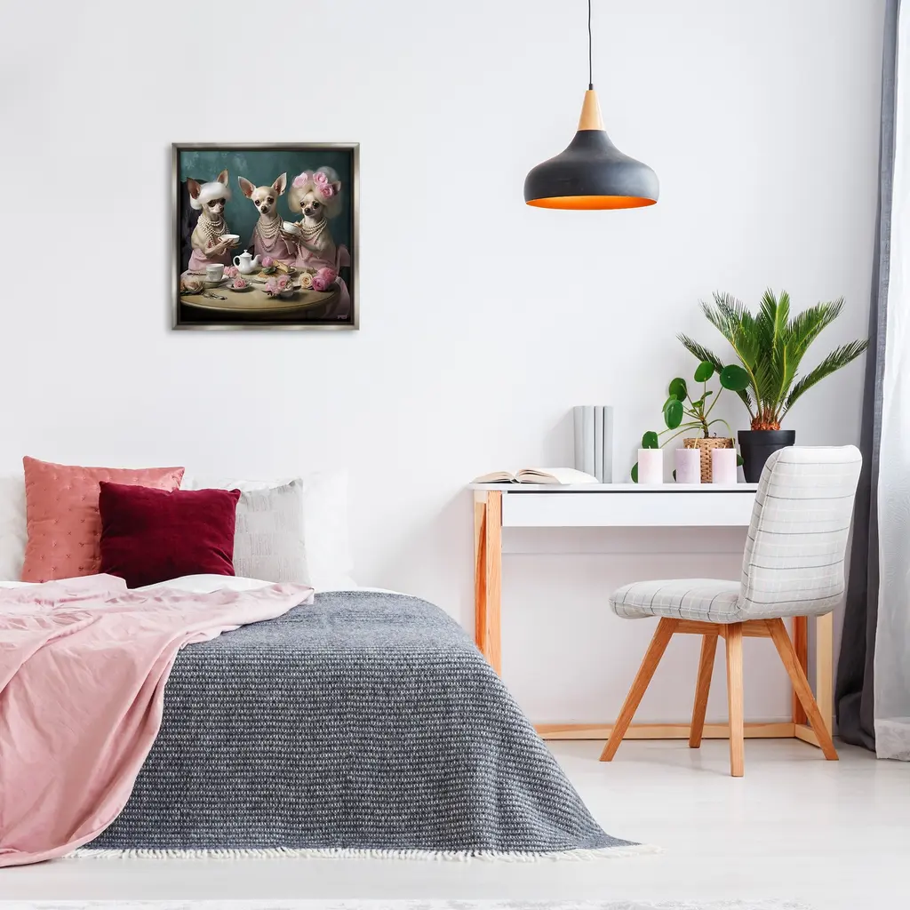 Stupell Chihuahua Tea Party Framed Floater Canvas Wall Art Design By Rb - 25 X 25 - Grey