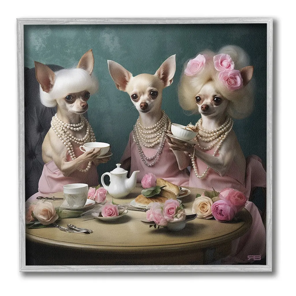 Add dimension to any room with our textured Framed Giclee Artwork. Our framed artwork is securely mounted into a 1.5-inch thick wood grain frame and ready to hang. Frames are available in three alluring styles: black, gray farmhouse and white. In addition, you should check out our oversized options if you want a statement piece. Stupell Wall Art is made in the USA.Features: Dimensions: 12 x 1.5 x 12 FramedFramed Giclee Product Sizes Include 12"x12", 17"x17", and 24"x24". Framed Giclee Products have a 1.5" Depth. Wall Art is Ready to Hang with Hardware Free Hanging. No installation required. For Easy Set Up Lean or Layer Artwork on Shelf or Against Wall.Our giclée prints are carefully mounted on a durable MDF backing, and then perfectly finished in a 1.5 inch thick woodgrain frame. Mounted frame colors include black, gray farmhouse and white. Made In USA.Artwork Relates To: Porcelain, Pottery, Beverage, Coffee, Teacup, Mug, Canine, Chihuahua, Dog, Mammal, Pet, Floral, Flower, Rose, Tea PartyDesign by RB