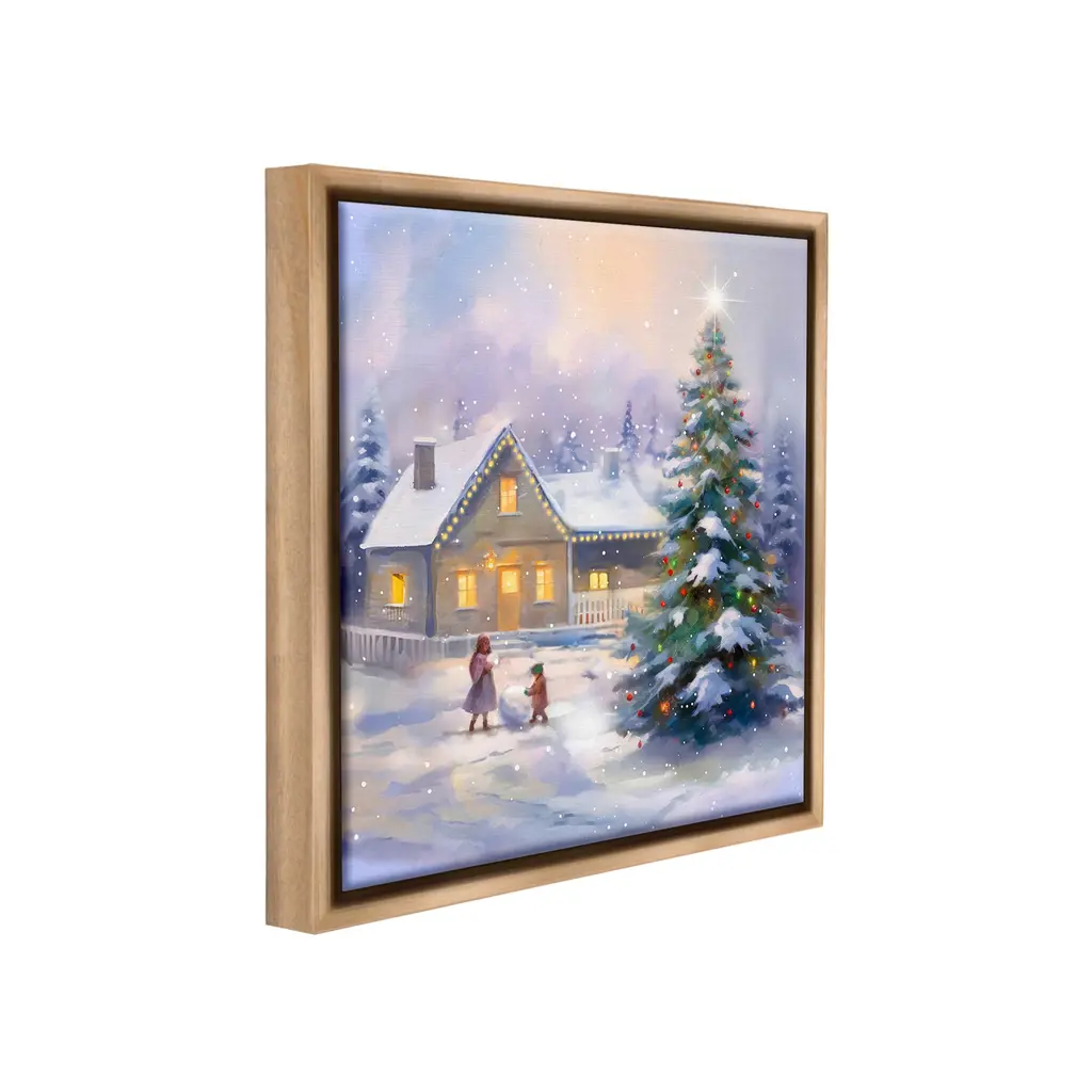 Elevate your home or office to the next level with Stupell Framed Floating Canvas Wall Art. Our premium hand-stretched canvas is mounted securely into a sturdy lightweight frame. The museum-style gap between the wrapped canvas and the box frame gives the illusion of floating artwork. Stupell Wall Art is made in the USA.Features: Dimensions: 18 x 1.7 x 18 Frame, 17 x 1.5 x 17 Canvas ArtFloating Frame Canvas Products are available in sizes 18"x18" and 25"x25". All Floating Frame Canvas Products have a 1.7" Depth.Wall Art is Ready to Hang with Hardware Free Hanging. No Installation required. For Easy Set Up Lean or Layer Artwork on Shelf or Against Wall. Artwork is Permently Fixed into the Frame.Our elevated 1.7" Thick Floating Frame is the perfect complement to our canvas style Wall Art. We use only the highest quality inks in house with industry leading printing solutions. Canvas is hand stretched over a durable wood foundation and then mounted securly into a Modern Box Frame. Made in the USA.Artwork Relates To: Christmas, Tree, Person, Christmas Tree, House, Nature, Snow, Winter, Children, People, SnowmanDesign by Enrico McGarrigle