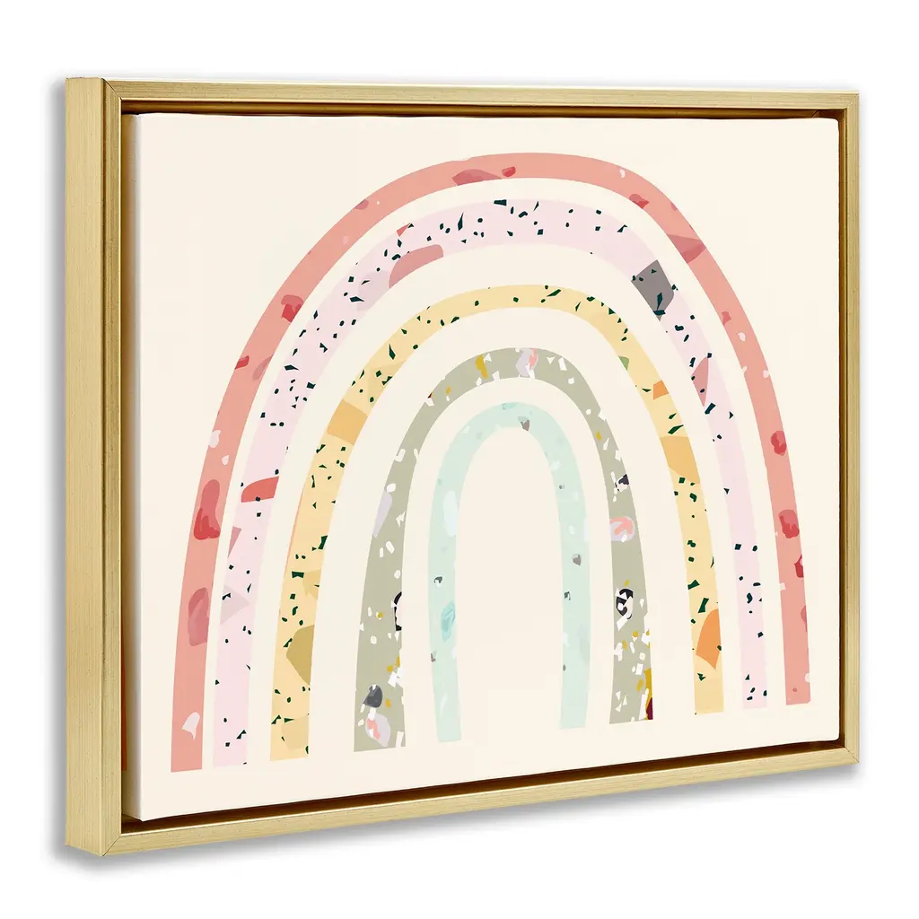 Stupell Children's Abstract Pattern Rainbow Framed Floater Canvas Wall Art Design By Daphne Polselli - 31 X 25 - Gold