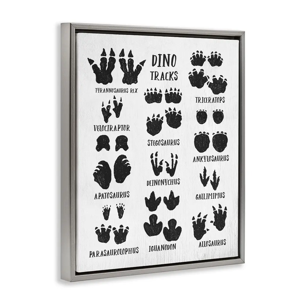 Stupell Children's Rustic Dinosaur Track Chart Framed Floater Canvas Wall Art Design By Daphne Polselli - 17 X 21 - Grey