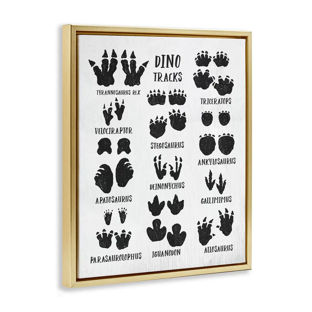 Elevate your home or office to the next level with Stupell Framed Floating Canvas Wall Art. Our premium hand-stretched canvas is mounted securely into a sturdy lightweight frame. The museum-style gap between the wrapped canvas and the box frame gives the illusion of floating artwork. Stupell Wall Art is made in the USA.Features: Dimensions: 17 x 1.7 x 21 Frame, 16 x 1.5 x 20 Canvas ArtFloating Frame Canvas Products are available in sizes 17"x21" and 25"x31". All Floating Frame Canvas Products have a 1.7" Depth.Wall Art is Ready to Hang with Hardware Free Hanging. No Installation required. For Easy Set Up Lean or Layer Artwork on Shelf or Against Wall. Artwork is Permently Fixed into the Frame.Our elevated 1.7" Thick Floating Frame is the perfect complement to our canvas style Wall Art. We use only the highest quality inks in house with industry leading printing solutions. Canvas is hand stretched over a durable wood foundation and then mounted securly into a Modern Box Frame. Made in the USA.Artwork Relates To: Kids, Dinosaur, Tracks, Nature, Animal, EducationalDesign by Daphne Polselli
