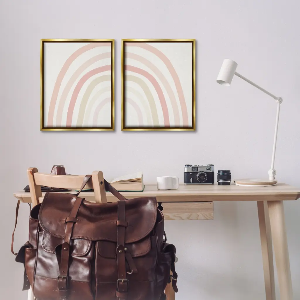 Elevate your home or office to the next level with Stupell Framed Floating Canvas Wall Art. Our premium hand-stretched canvas is mounted securely into a sturdy lightweight frame. The museum-style gap between the wrapped canvas and the box frame gives the illusion of floating artwork. Stupell Wall Art is made in the USA.Features: Dimensions: 2 Piece Set, Each Frame is 17 x 1.7 x 21Two Piece Floater Framed Canvas are available as 17x21 or 25x31 Panels. All Floater Frame Products have a 1.7" Depth.Wall Art is Ready to Hang with Hardware Free Hanging. No Installation required. For Easy Set Up Lean or Layer Artwork on Shelf or Against Wall. Artwork is Permently Fixed into the Frame.Our elevated 1.7" Thick Floating Frame is the perfect complement to our canvas style Wall Art. We use only the highest quality inks in house with industry leading printing solutions. Canvas is hand stretched over a durable wood foundation and then mounted securly into a Modern Box Frame. Made in the USA.Artwork Relates To: Boho, Rainbow, Neutral, Stripes, Pattern, NatureDesign by Leah Straatsma