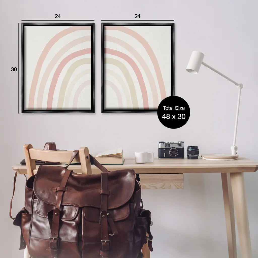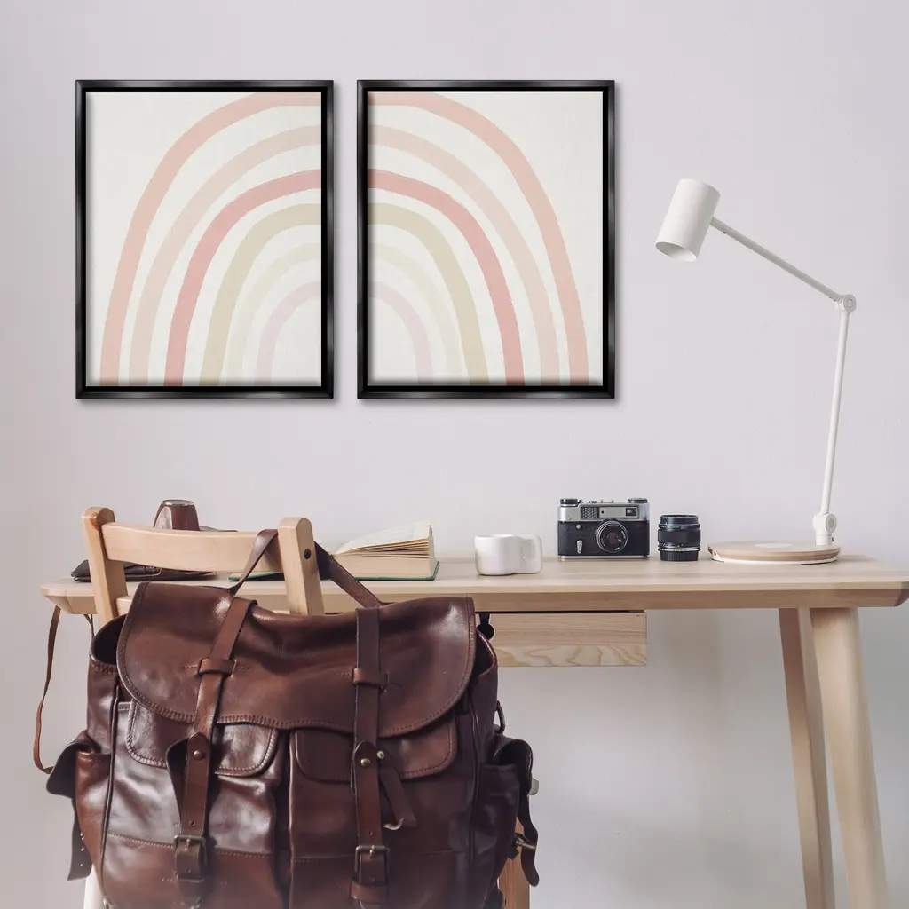 Elevate your home or office to the next level with Stupell Framed Floating Canvas Wall Art. Our premium hand-stretched canvas is mounted securely into a sturdy lightweight frame. The museum-style gap between the wrapped canvas and the box frame gives the illusion of floating artwork. Stupell Wall Art is made in the USA.Features: Dimensions: 2 Piece Set, Each Frame is 17 x 1.7 x 21Two Piece Floater Framed Canvas are available as 17x21 or 25x31 Panels. All Floater Frame Products have a 1.7" Depth.Wall Art is Ready to Hang with Hardware Free Hanging. No Installation required. For Easy Set Up Lean or Layer Artwork on Shelf or Against Wall. Artwork is Permently Fixed into the Frame.Our elevated 1.7" Thick Floating Frame is the perfect complement to our canvas style Wall Art. We use only the highest quality inks in house with industry leading printing solutions. Canvas is hand stretched over a durable wood foundation and then mounted securly into a Modern Box Frame. Made in the USA.Artwork Relates To: Boho, Rainbow, Neutral, Stripes, Pattern, NatureDesign by Leah Straatsma