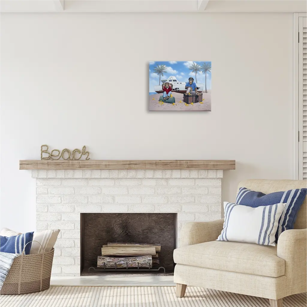 We create our stretched canvas to the highest standards. Using only the highest quality inks and canvas on Mimaki printers, we hand-cut and stretch each piece over a 1.5-inch thick wooden frame for hanging. As a result, the art comes ready to hang on the sturdy ledge with no installation required. Stupell Wall Art is made in the USA.Features: Dimensions: 20 x 1.5 x 16 InchesStretched Canvas Sizes Include Standard: 20 x 1.5 x 16 Large: 30 x 1.5 x 20 X-Large: 40 x 1.5 x 30 Oversized: 48 x 1.5 x 36Wall Art is Ready to Hang with Hardware Free Hanging. No installation required. For Easy Set Up Lean or Layer Artwork on Shelf or Against Wall.Our stretched canvas is created with the highest standards. We use only the highest quality inks and canvas on our in house Mimaki printers, and then hand cut and stretch each piece over a 1.5 inch thick wooden frame for hanging. Made In USA.Artwork Relates To: Chimp, Monkey, Animal, Bananas, Yacht, Boat, Beach, Tropical, Palm Tree, ShoreDesign by Richard Courtney
