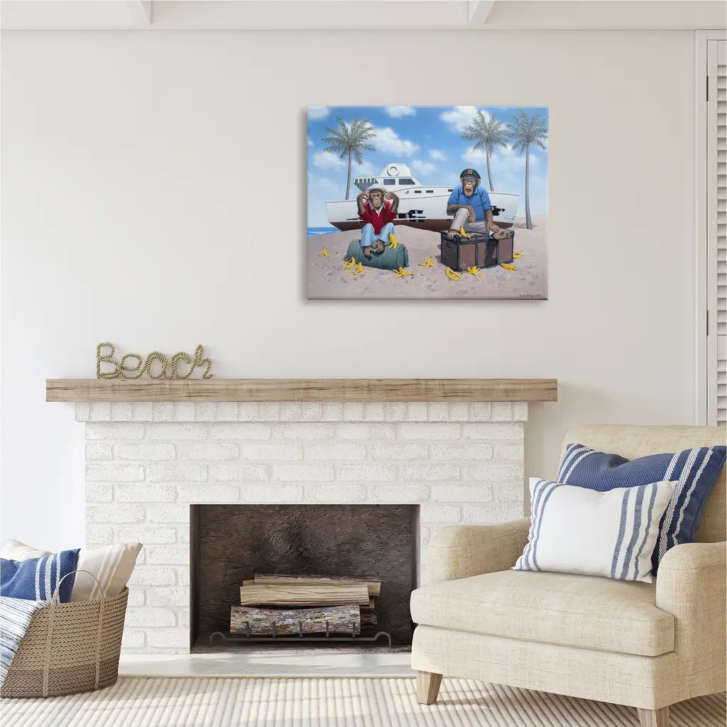 We create our stretched canvas to the highest standards. Using only the highest quality inks and canvas on Mimaki printers, we hand-cut and stretch each piece over a 1.5-inch thick wooden frame for hanging. As a result, the art comes ready to hang on the sturdy ledge with no installation required. Stupell Wall Art is made in the USA.Features: Dimensions: 20 x 1.5 x 16 InchesStretched Canvas Sizes Include Standard: 20 x 1.5 x 16 Large: 30 x 1.5 x 20 X-Large: 40 x 1.5 x 30 Oversized: 48 x 1.5 x 36Wall Art is Ready to Hang with Hardware Free Hanging. No installation required. For Easy Set Up Lean or Layer Artwork on Shelf or Against Wall.Our stretched canvas is created with the highest standards. We use only the highest quality inks and canvas on our in house Mimaki printers, and then hand cut and stretch each piece over a 1.5 inch thick wooden frame for hanging. Made In USA.Artwork Relates To: Chimp, Monkey, Animal, Bananas, Yacht, Boat, Beach, Tropical, Palm Tree, ShoreDesign by Richard Courtney