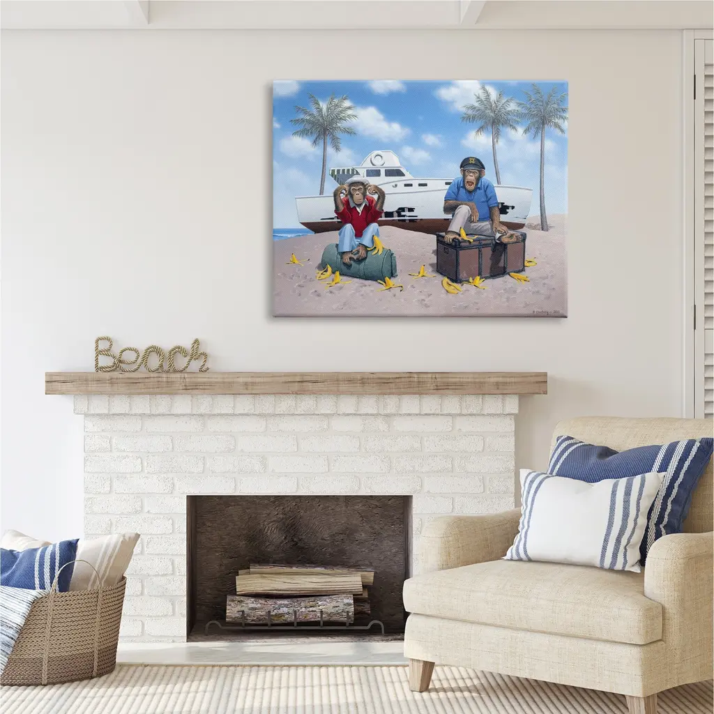 We create our stretched canvas to the highest standards. Using only the highest quality inks and canvas on Mimaki printers, we hand-cut and stretch each piece over a 1.5-inch thick wooden frame for hanging. As a result, the art comes ready to hang on the sturdy ledge with no installation required. Stupell Wall Art is made in the USA.Features: Dimensions: 20 x 1.5 x 16 InchesStretched Canvas Sizes Include Standard: 20 x 1.5 x 16 Large: 30 x 1.5 x 20 X-Large: 40 x 1.5 x 30 Oversized: 48 x 1.5 x 36Wall Art is Ready to Hang with Hardware Free Hanging. No installation required. For Easy Set Up Lean or Layer Artwork on Shelf or Against Wall.Our stretched canvas is created with the highest standards. We use only the highest quality inks and canvas on our in house Mimaki printers, and then hand cut and stretch each piece over a 1.5 inch thick wooden frame for hanging. Made In USA.Artwork Relates To: Chimp, Monkey, Animal, Bananas, Yacht, Boat, Beach, Tropical, Palm Tree, ShoreDesign by Richard Courtney
