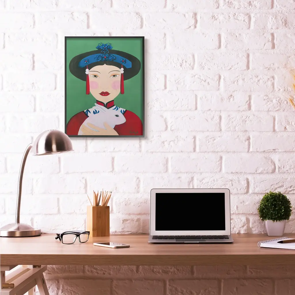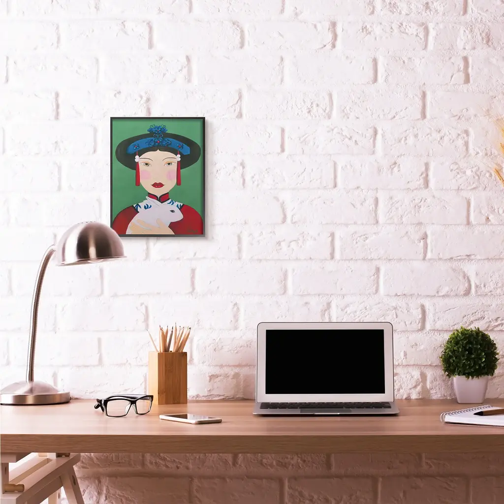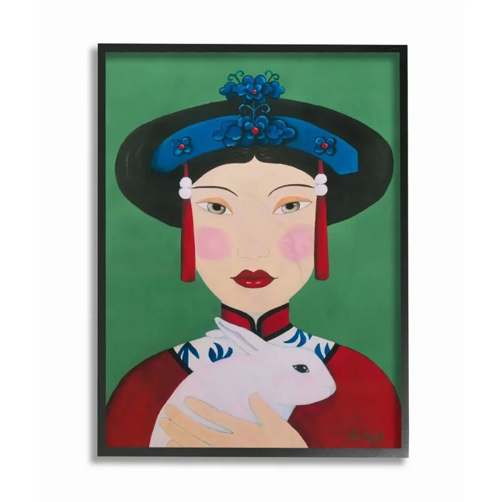 Stupell Chinese Woman And Rabbit Green Red Painting Framed Wall Art - 11 X 14