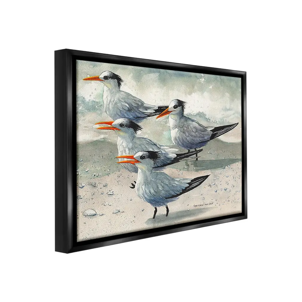 Elevate your home or office to the next level with Stupell Framed Floating Canvas Wall Art. Our premium hand-stretched canvas is mounted securely into a sturdy lightweight frame. The museum-style gap between the wrapped canvas and the box frame gives the illusion of floating artwork. Stupell Wall Art is made in the USA.Features: Dimensions: 21 x 1.7 x 17 Frame, 20 x 1.5 x 16 Canvas ArtFloating Frame Canvas Products are available in sizes 21"x17" and 31"x25". All Floating Frame Canvas Products have a 1.7" Depth.Wall Art is Ready to Hang with Hardware Free Hanging. No Installation required. For Easy Set Up Lean or Layer Artwork on Shelf or Against Wall. Artwork is Permently Fixed into the Frame.Our elevated 1.7" Thick Floating Frame is the perfect complement to our canvas style Wall Art. We use only the highest quality inks in house with industry leading printing solutions. Canvas is hand stretched over a durable wood foundation and then mounted securly into a Modern Box Frame. Made in the USA.Artwork Relates To: Animal, Beak, Bird, Painting, Waterfowl, Beach, Shore, Ocean, Sea, SeashellDesign by Christine Reichow