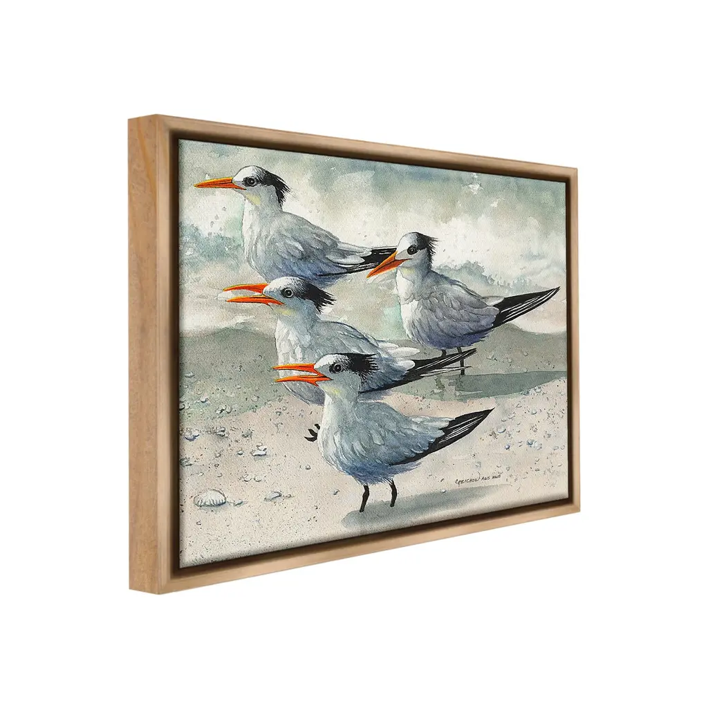 Elevate your home or office to the next level with Stupell Framed Floating Canvas Wall Art. Our premium hand-stretched canvas is mounted securely into a sturdy lightweight frame. The museum-style gap between the wrapped canvas and the box frame gives the illusion of floating artwork. Stupell Wall Art is made in the USA.Features: Dimensions: 21 x 1.7 x 17 Frame, 20 x 1.5 x 16 Canvas ArtFloating Frame Canvas Products are available in sizes 21"x17" and 31"x25". All Floating Frame Canvas Products have a 1.7" Depth.Wall Art is Ready to Hang with Hardware Free Hanging. No Installation required. For Easy Set Up Lean or Layer Artwork on Shelf or Against Wall. Artwork is Permently Fixed into the Frame.Our elevated 1.7" Thick Floating Frame is the perfect complement to our canvas style Wall Art. We use only the highest quality inks in house with industry leading printing solutions. Canvas is hand stretched over a durable wood foundation and then mounted securly into a Modern Box Frame. Made in the USA.Artwork Relates To: Animal, Beak, Bird, Painting, Waterfowl, Beach, Shore, Ocean, Sea, SeashellDesign by Christine Reichow