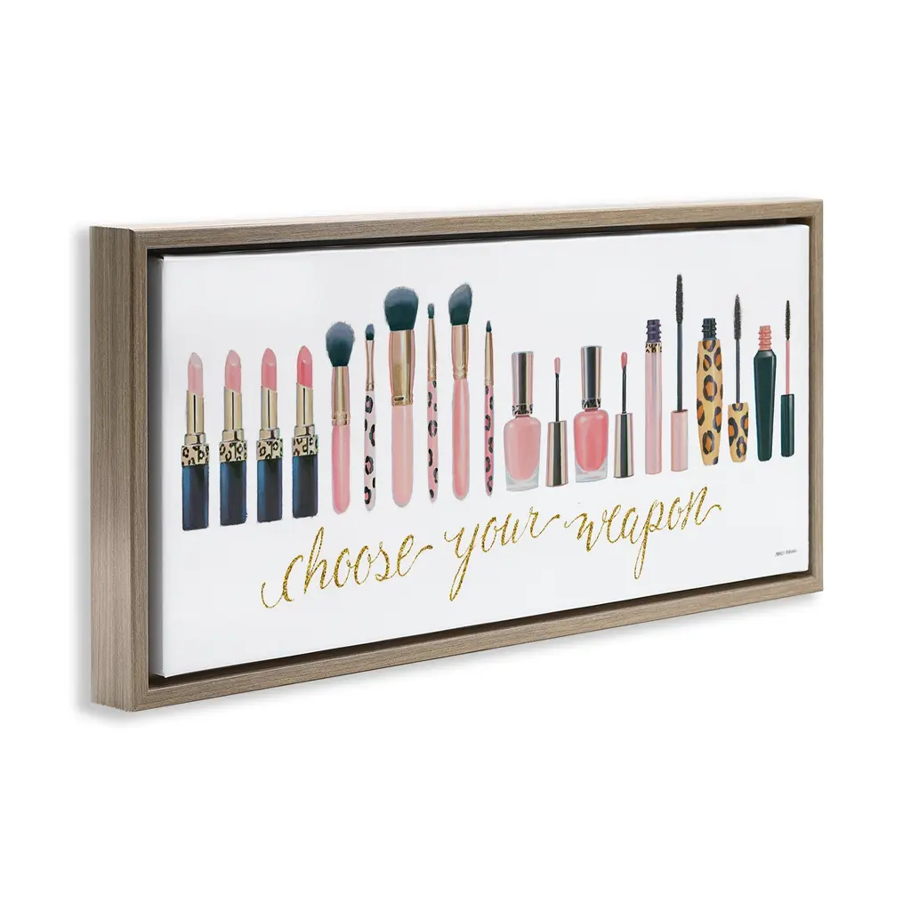 Stupell Choose Your Weapon Glam Makeup Framed Floater Canvas Wall Art Design By Marco Fabiano - 25 X 11 - Brown